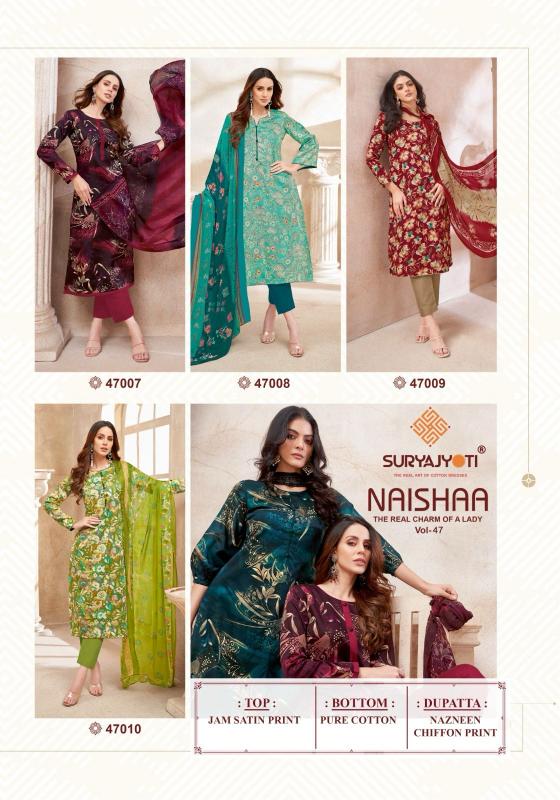 suryajyoti naishaa vol 47 jam satin print fancy unstitch salwar kameez