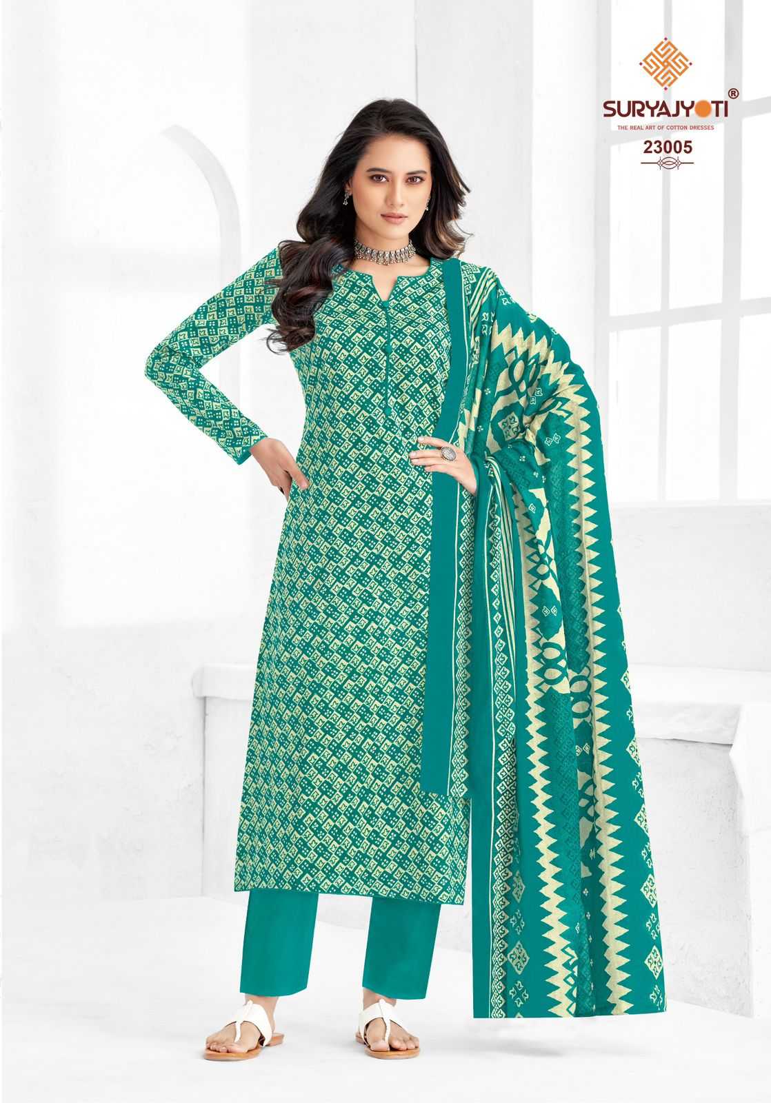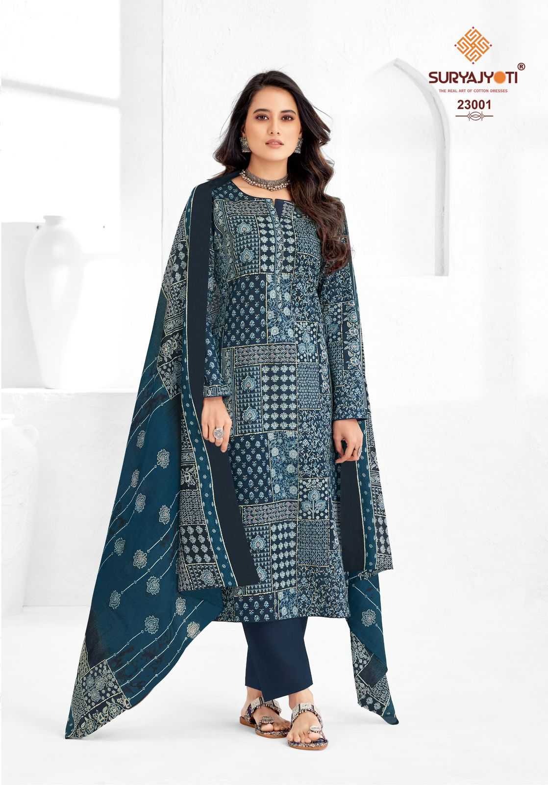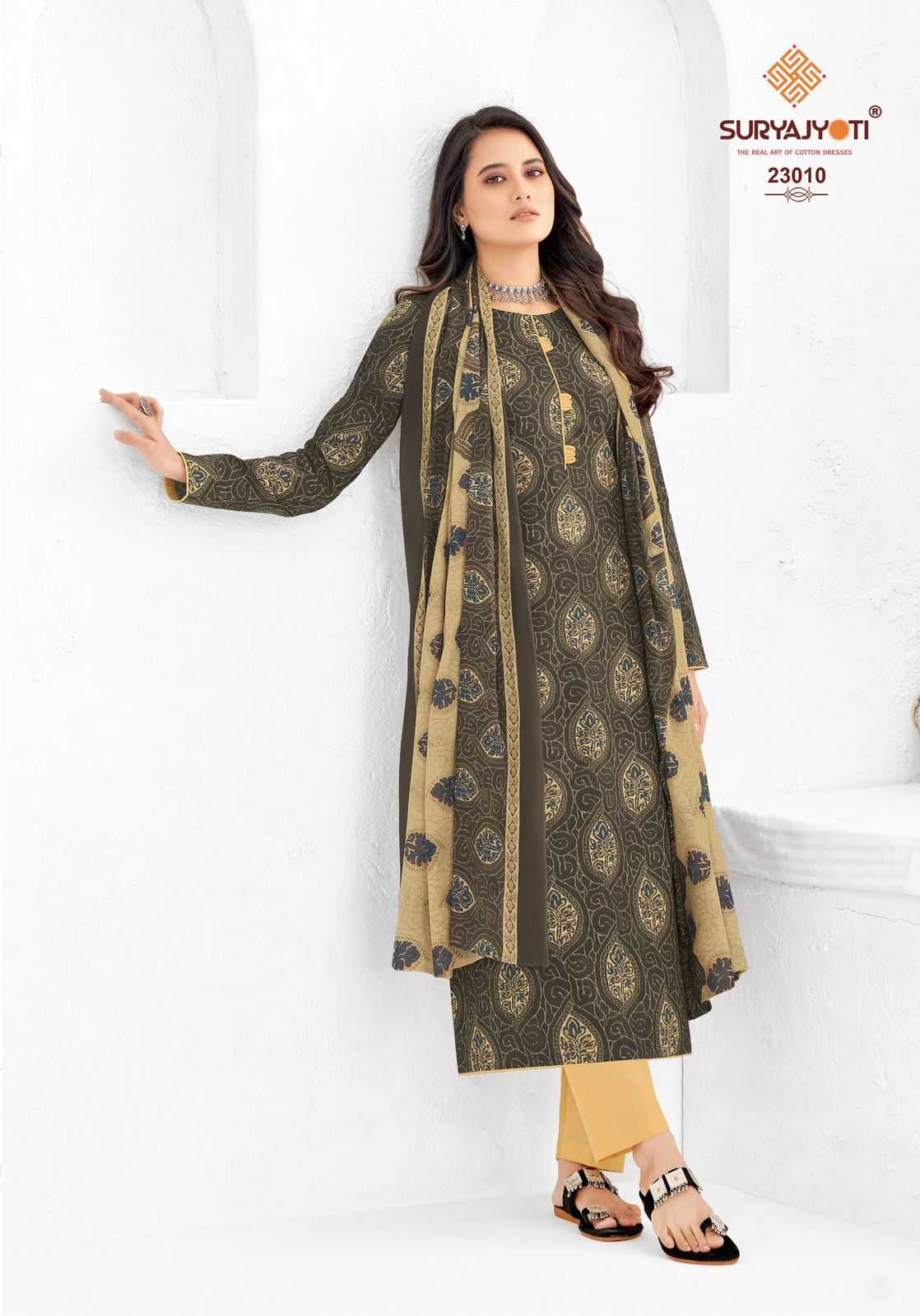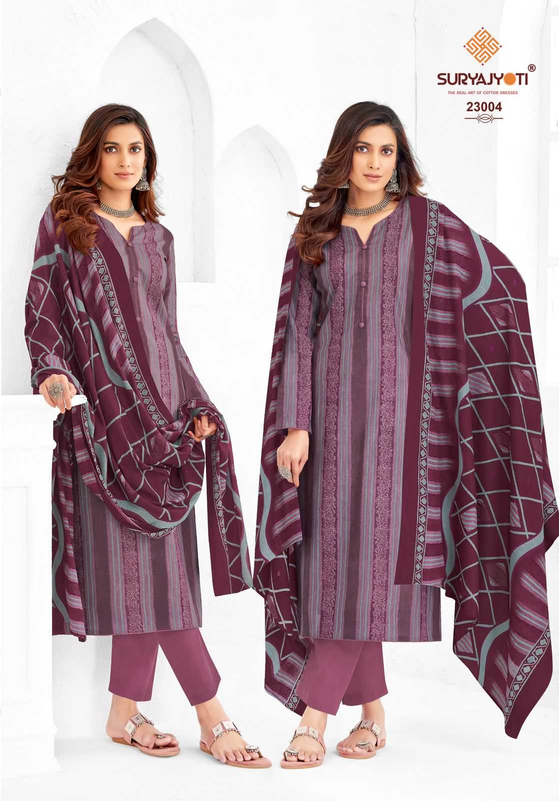 Suryajyoti Cotton Presents Latest Collection Launched on 23-07-2024. Presenting Beautiful collection of 10 PCS with Unstitched .