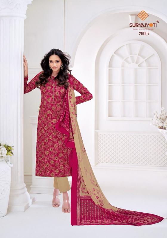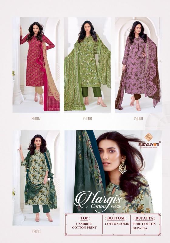 suryajyoti nargis cotton vol 26 cotton print regular wear 3pcs dress