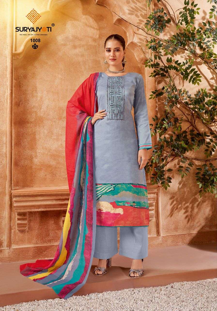 Suryajyoti Cotton Presents Latest Collection Launched on 02-11-2022. Presenting Beautiful collection of 8 PCS with Unstitched .