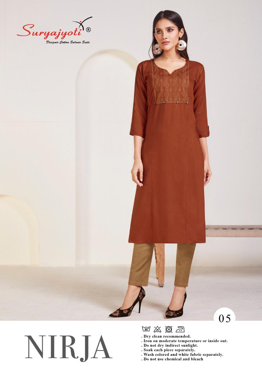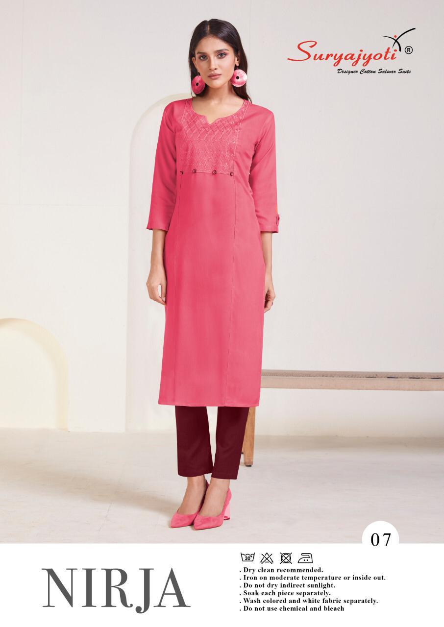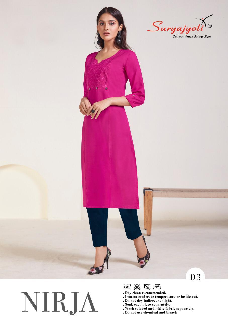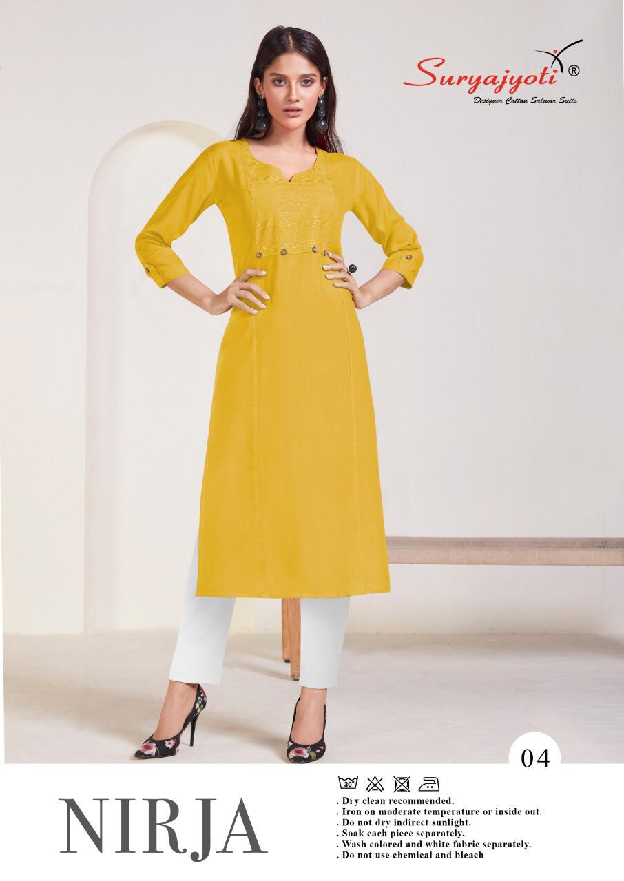 Suryajyoti Nirja Vol 1 Rayon Cotton Simple Sobar Daily Wear Kurti At Lowest Price