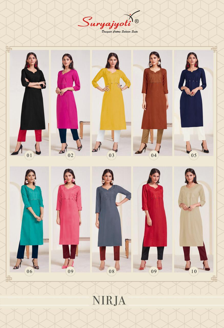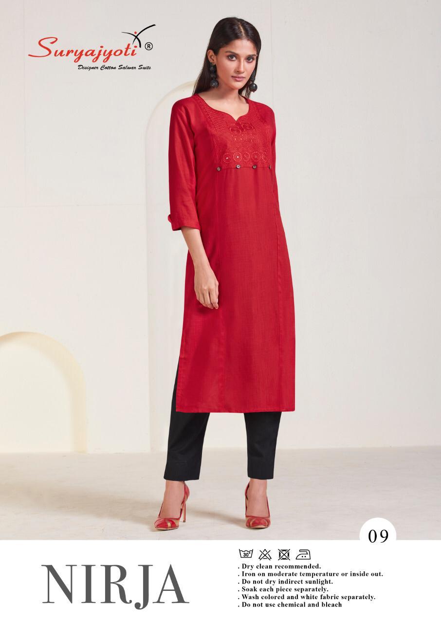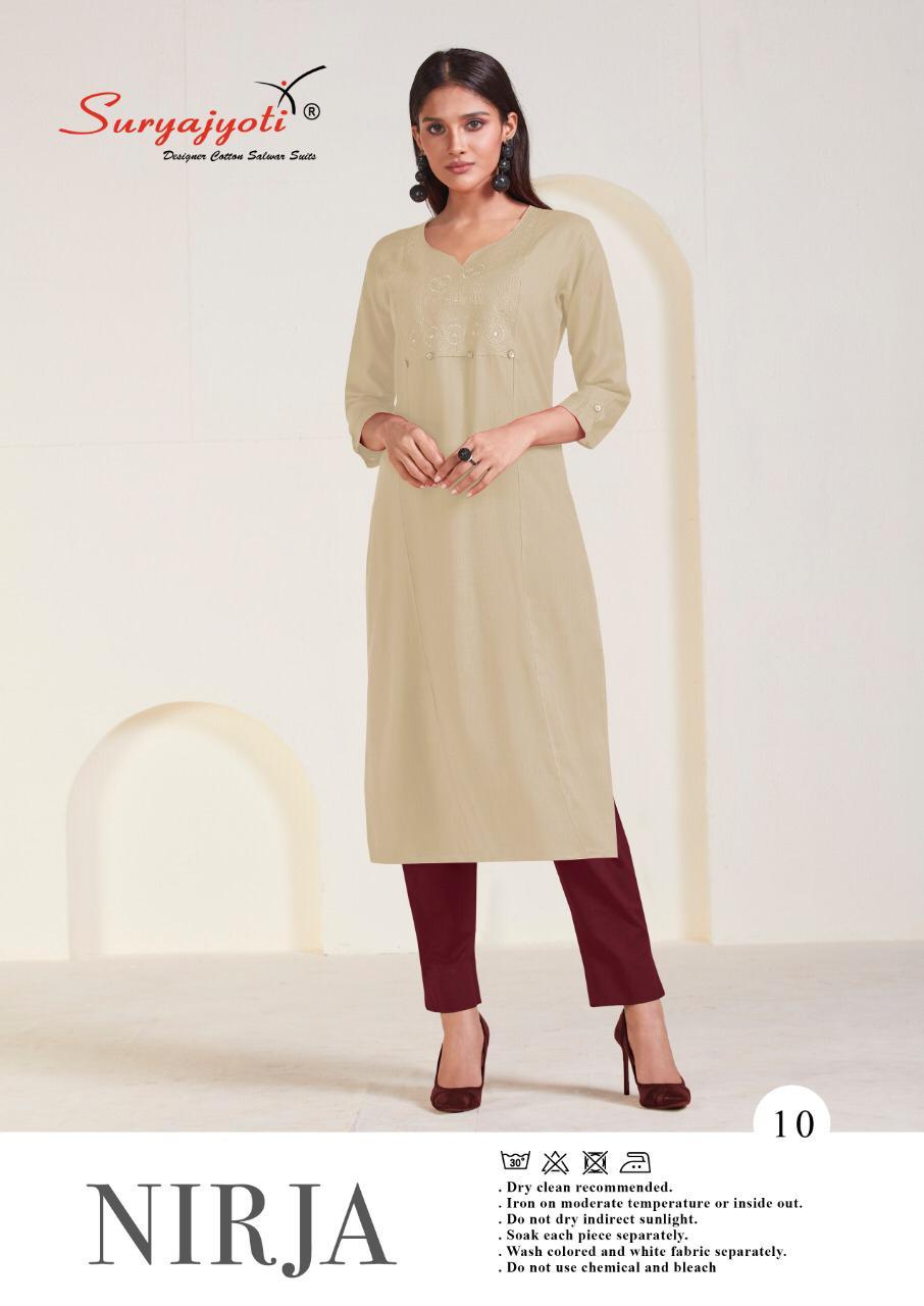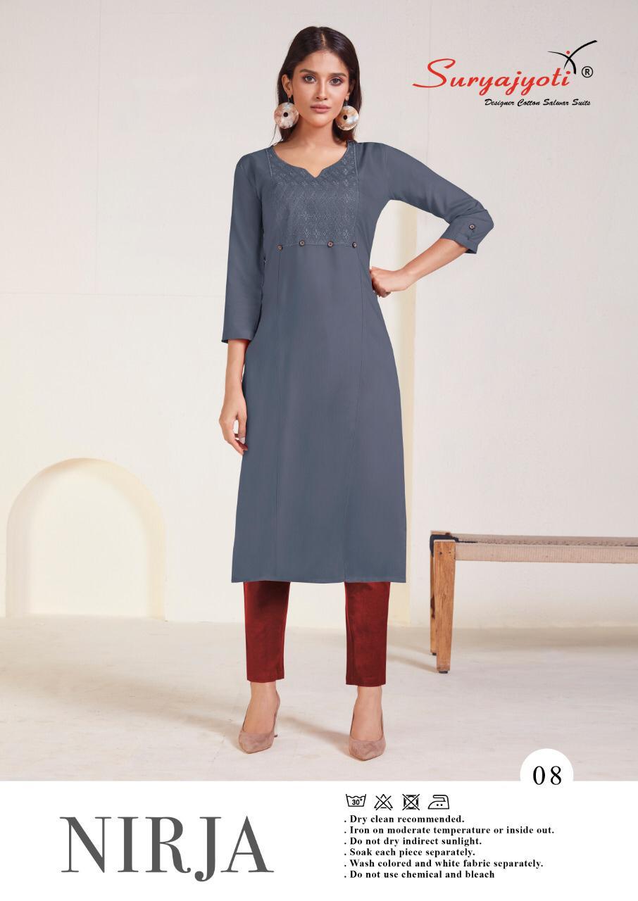 Suryajyoti Nirja Vol 1 Rayon Cotton Simple Sobar Daily Wear Kurti At Lowest Price