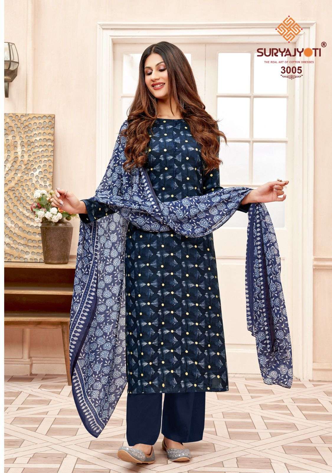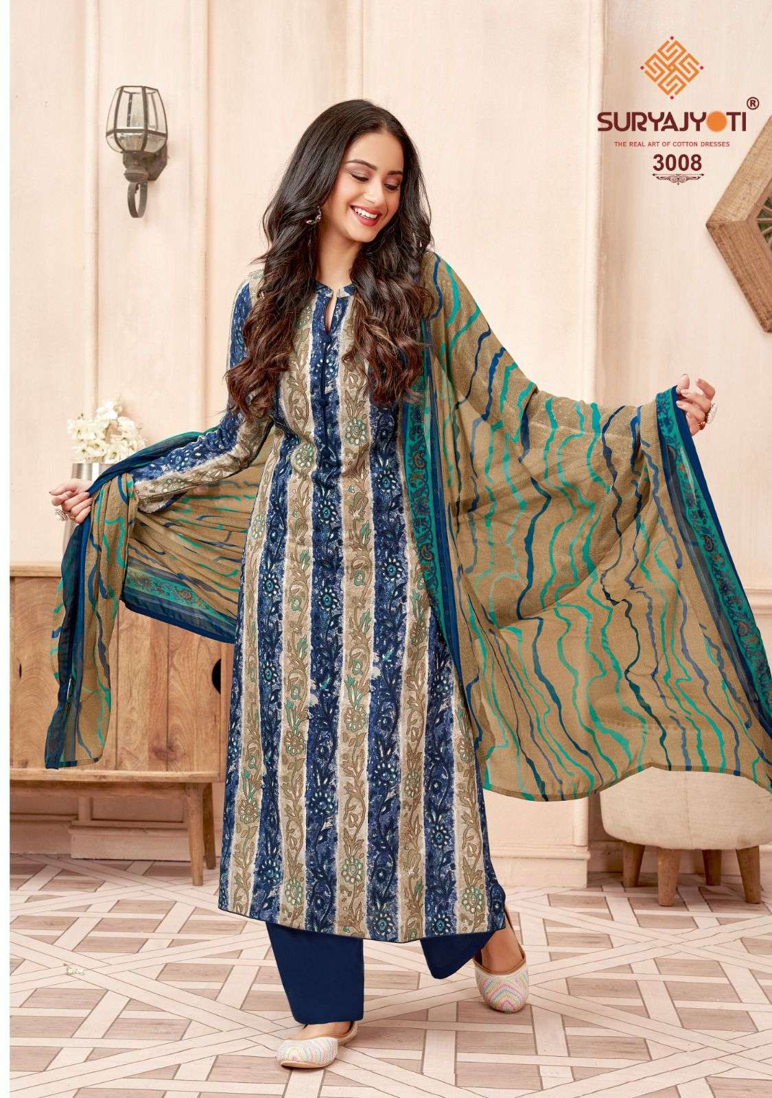 Suryajyoti Cotton Presents Latest Collection Launched on 20-03-2023. Presenting Beautiful collection of 6 PCS with Unstitched .