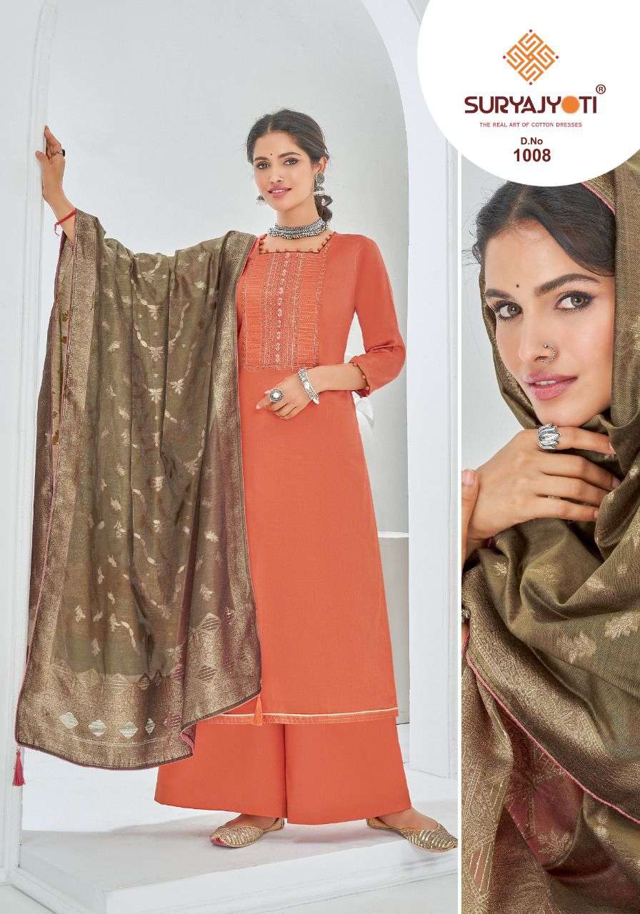 Suryajyoti Cotton Presents Latest Collection Launched on 07-07-2022. Presenting Beautiful collection of 8 PCS with Unstitched .