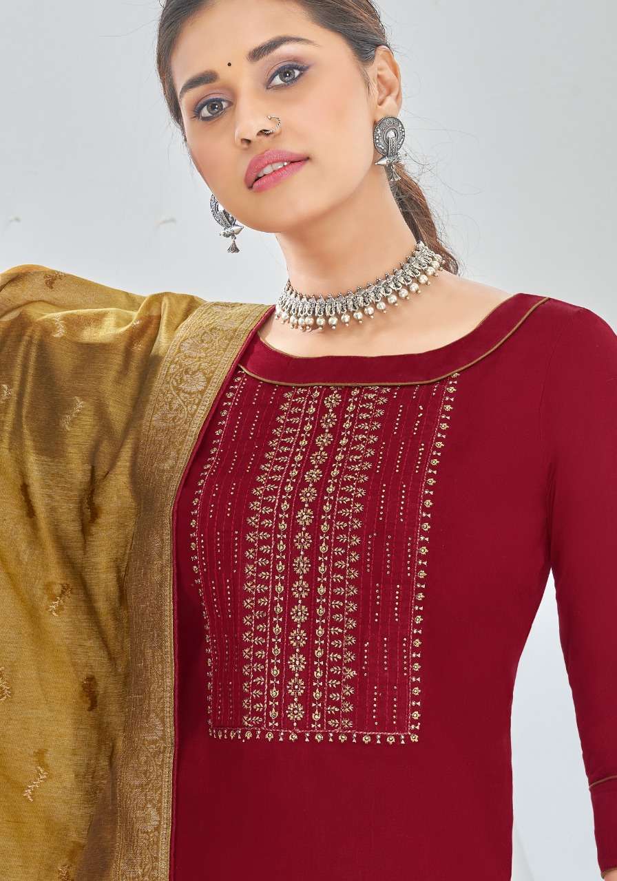 DEAR CUSTOMER, WELCOME TO SURYAJYOTI LAUNCHING OF SURYAJYOTI 'S NEW CATALOG 📕CATALOGUE:- PASOORI VOL-1 👗CLOTH:- JAAM SATIN WITH NECK EMBRODIERY & SWAROVSKI DIAMOND WORK DUPATTA:- FANCY JACQUARD DUPATTA WITH FOUR SIDE PIPING LACE & TESSELS BOTTOM:- COTTON SOLID CUT:- 2.50-2.50-2.25 RATE:- 850 /- ONLY PACKING:- EXCLUSIVE POUCH PACK WITH LEATHER BAG🧳 |
