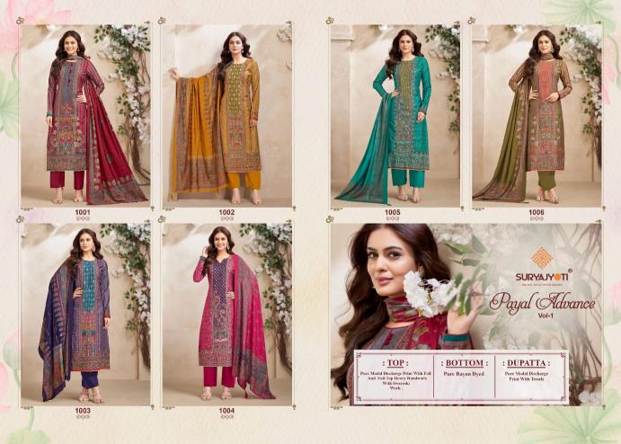 suryajyoti payal advance vol 1 pretty look modal discharge print dress material