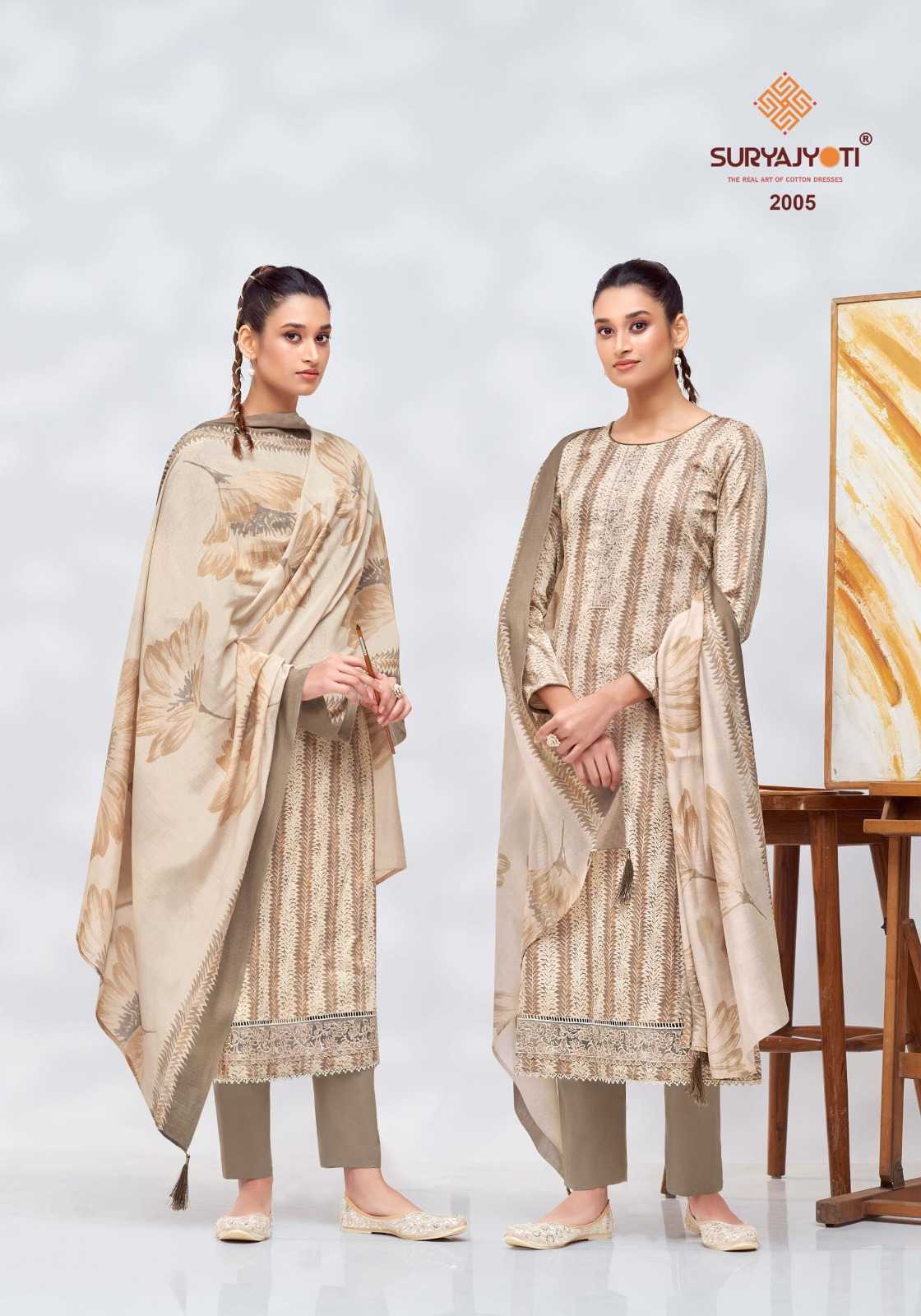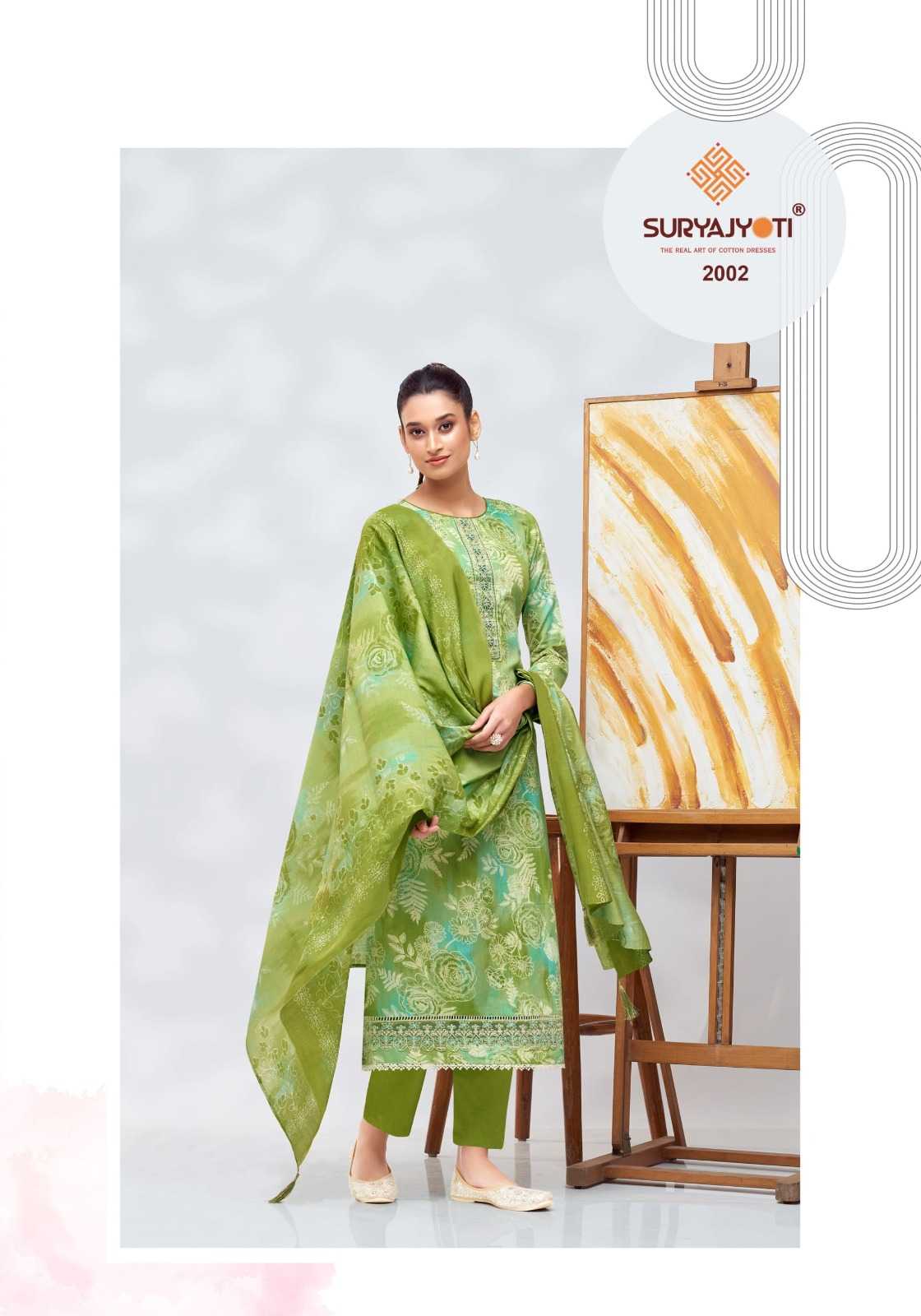 DEAR CUSTOMER WELCOME TO SURYAJYOTI LAUNCHING OF SURYAJYOTI’S NEW FANCY PRINT CATALOG 📕CATALOGUE- PRACHI VOL-2 👚TOP- JAAM SATIN PRINT WITH FOIL AND KHADI,ALSO NECK & BORDER EMBROIDERY 👖BOTTOM- PURE COTTON 🧣DUPATTA- MODAL PRINT WITH TESSELS CUT- 2.50-2.50–2.25 RATE- 855/- PACKING- EXCLUSIVE POUCH PACK WITH BAG🧳 |
