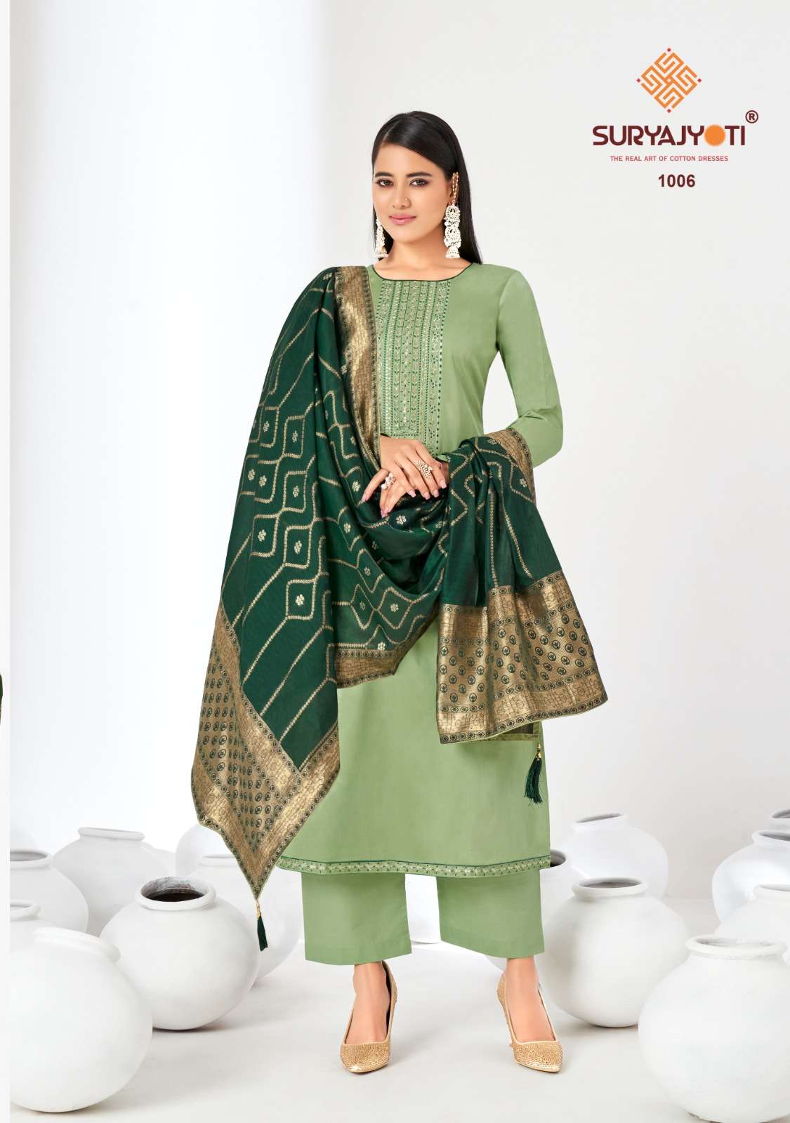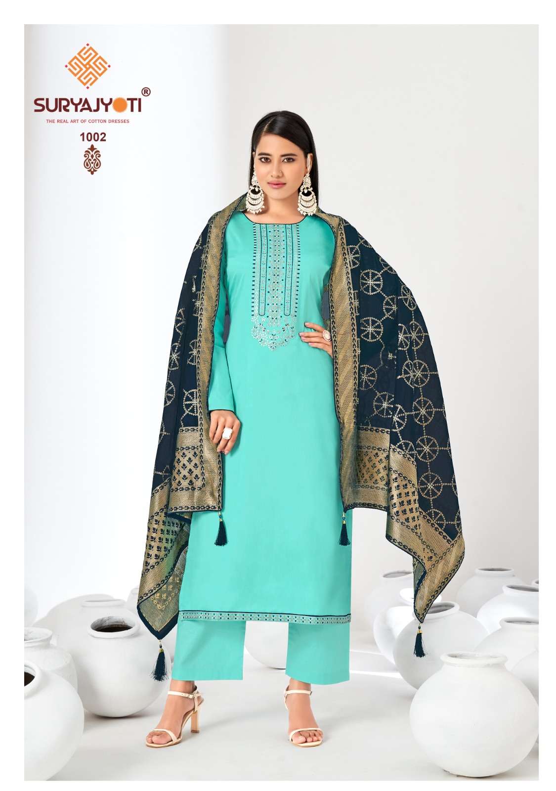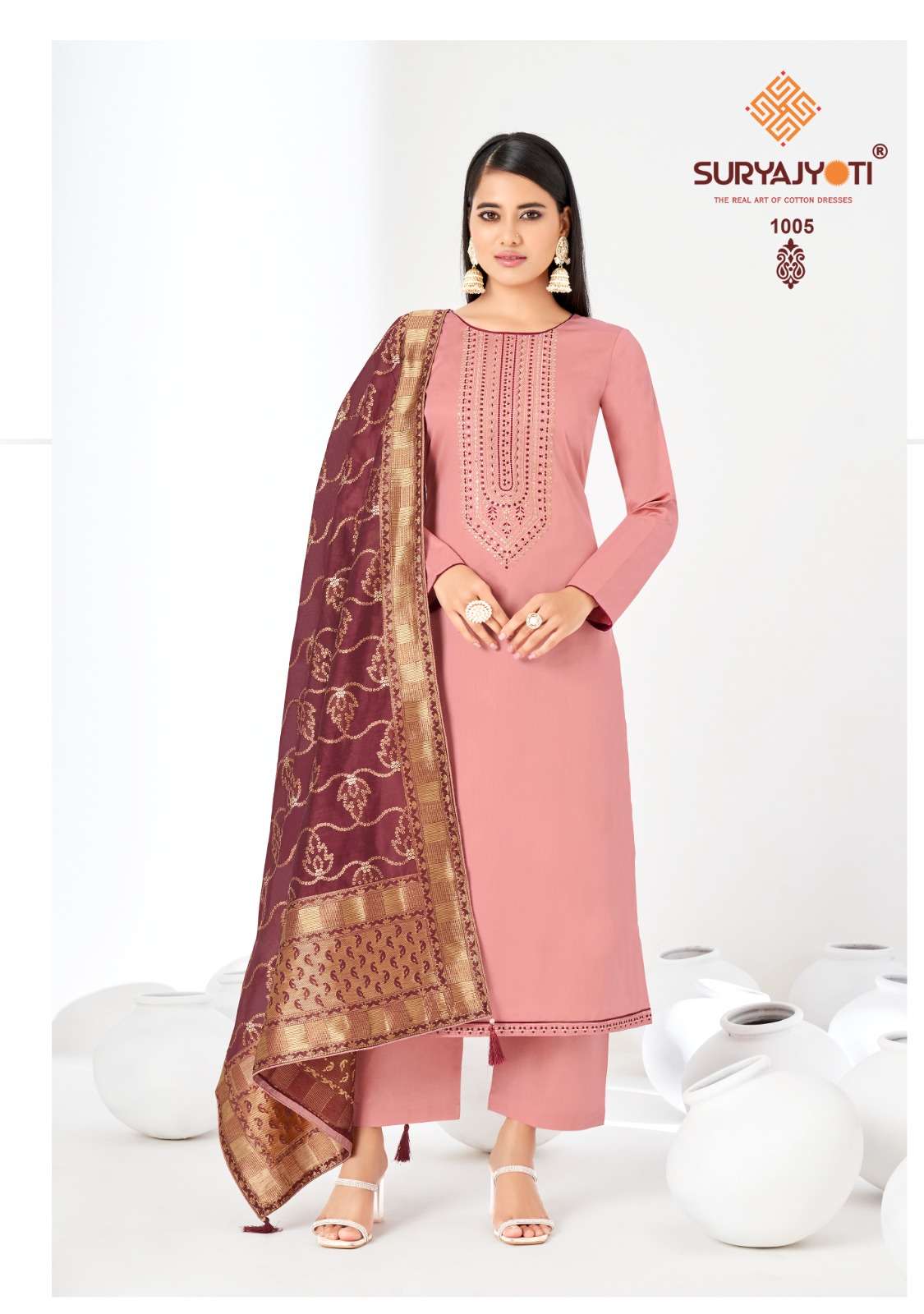Suryajyoti Cotton Presents Latest Collection Launched on 27-05-2023. Presenting Beautiful collection of 6 PCS with Unstitched .