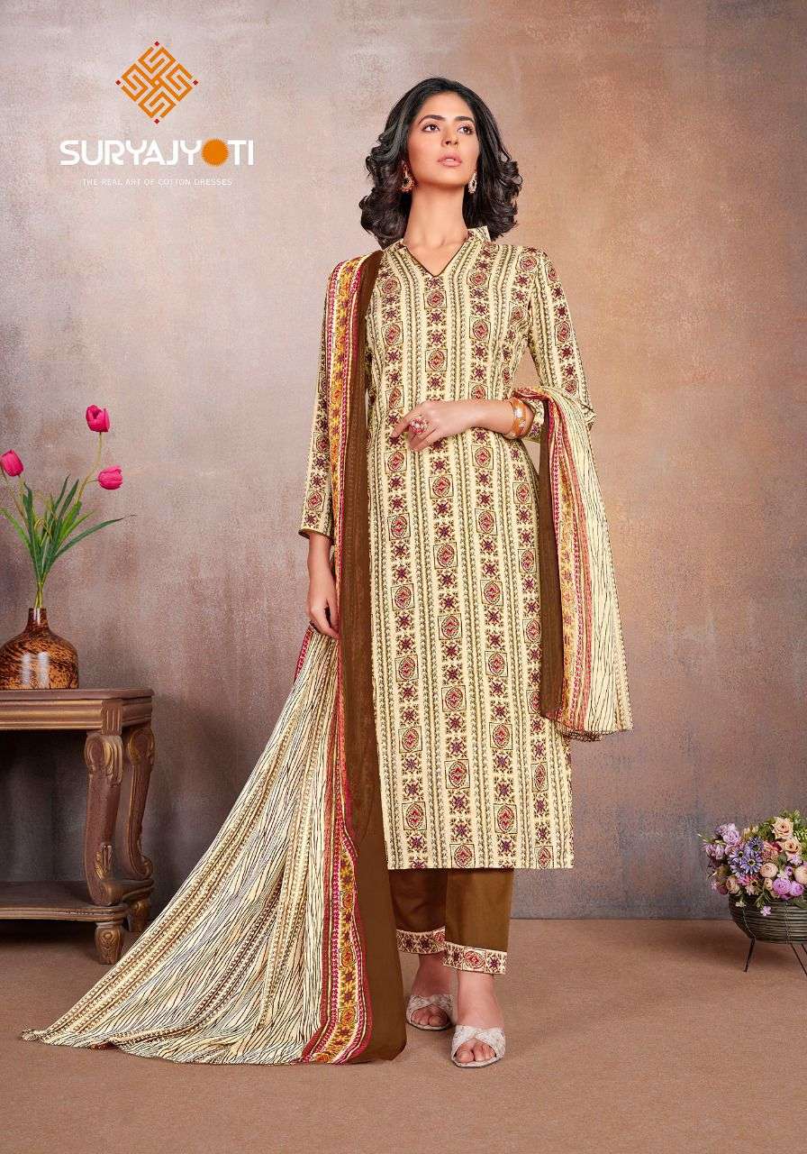 Suryajyoti Cotton Presents Latest Collection Launched on 08-11-2022. Presenting Beautiful collection of 10 PCS with Unstitched .