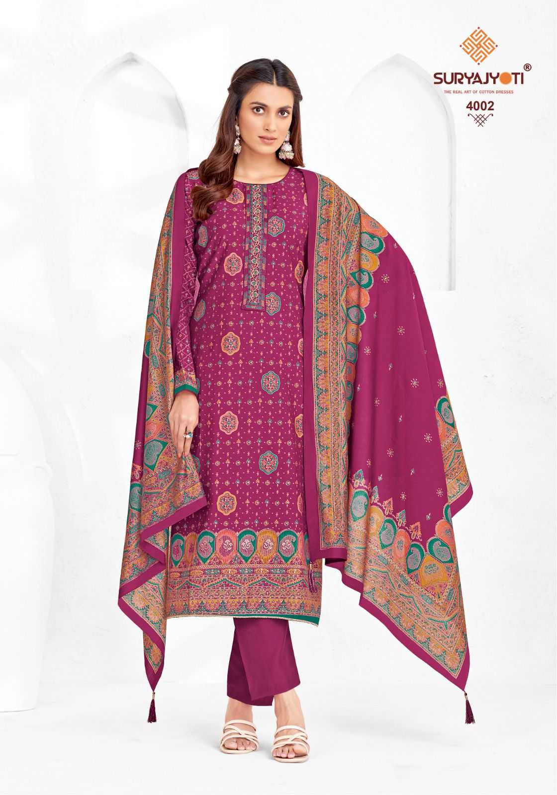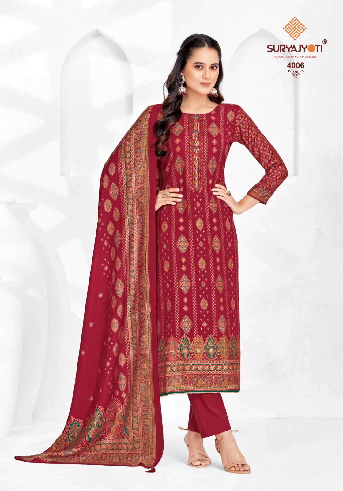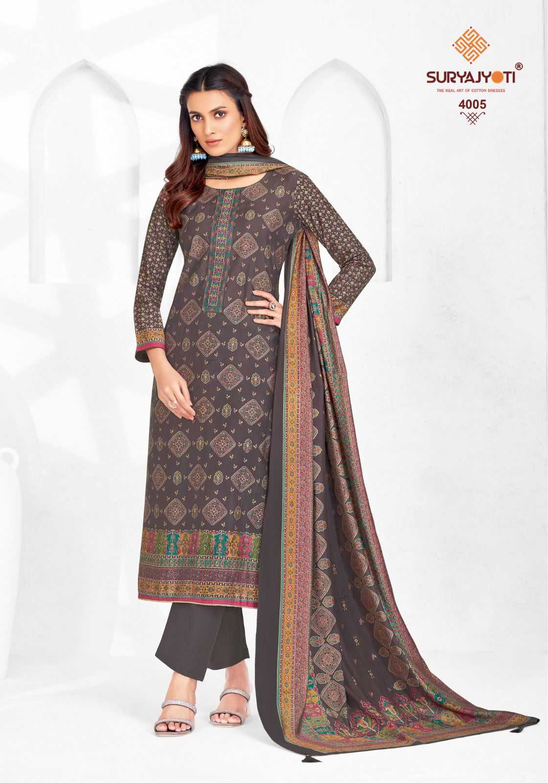 suryajyoti pushpa vol 4 comfortable modal foil work dress material