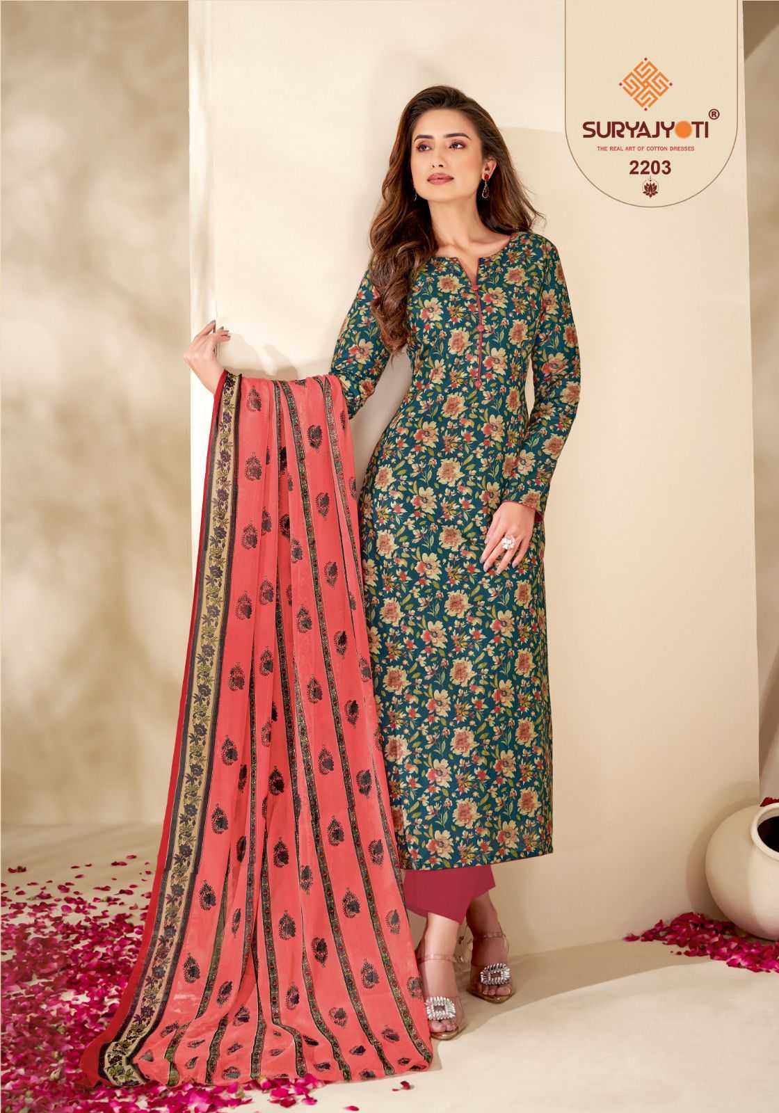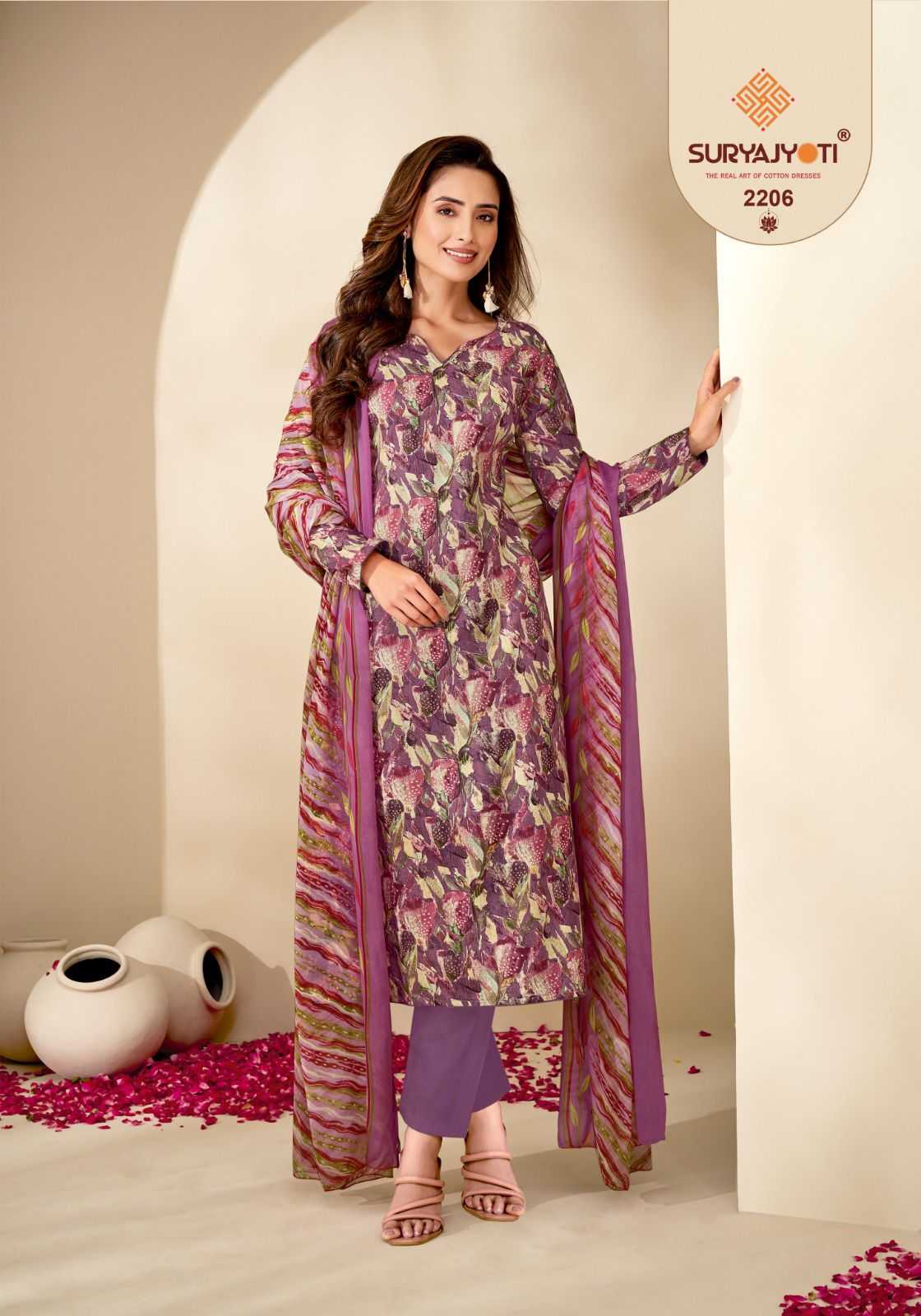 suryajyoti suhana vol 22 cotton printed trendy unstitch salwar kameez