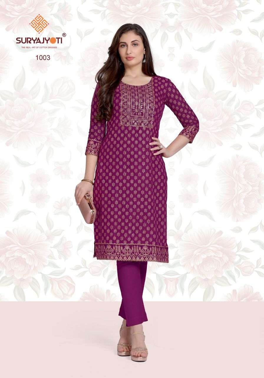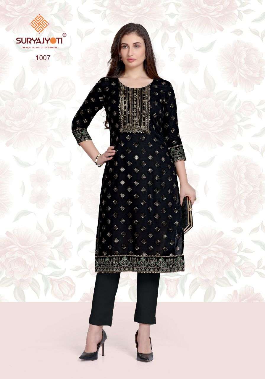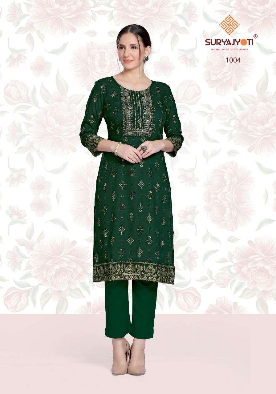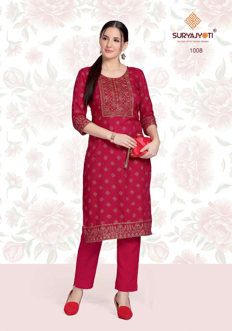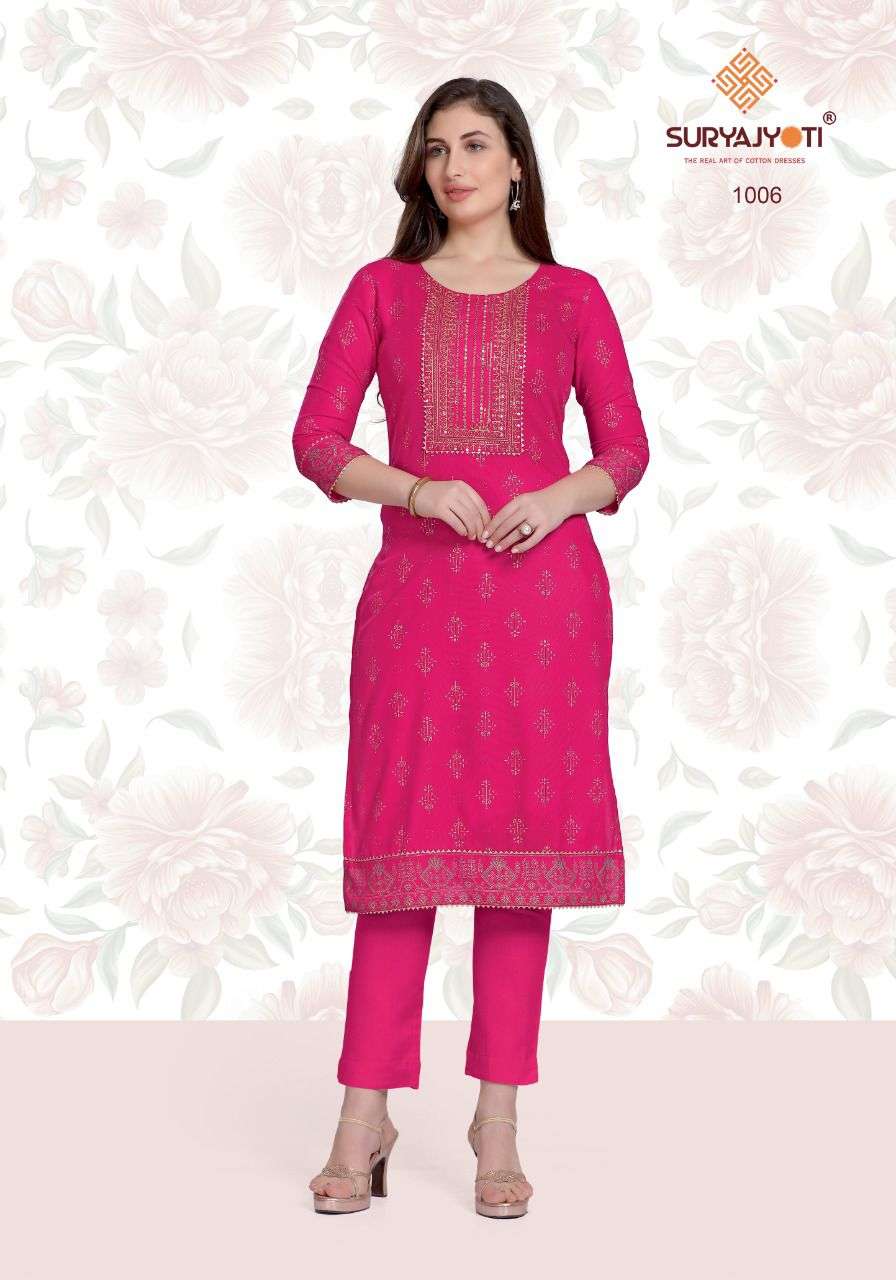 suryajyoti tara vol 1 series 1001 to 1008 rayon cotton casual wear kurti with pant