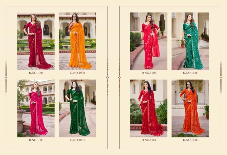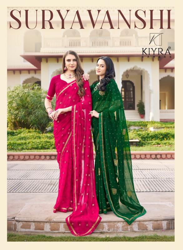NEW ITEM LAUNCH SURYAVANSHI Fabrics: CXC MAJOR GEORGETTE WITH FOIL WITH SIROSKI BORDER with HEAVY BLOUSE. |