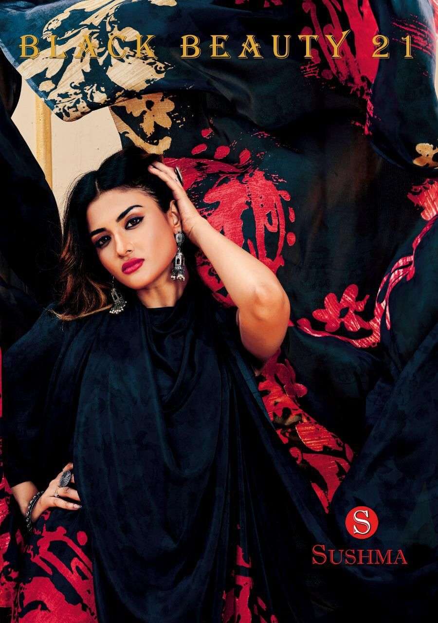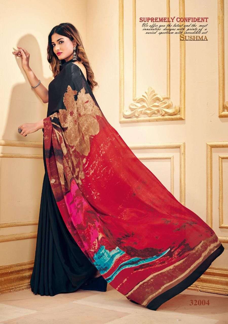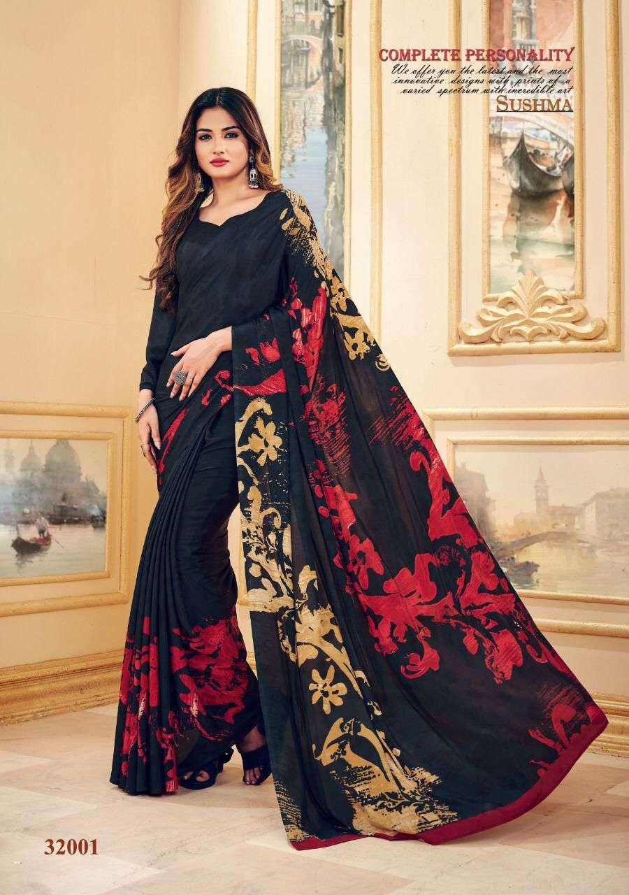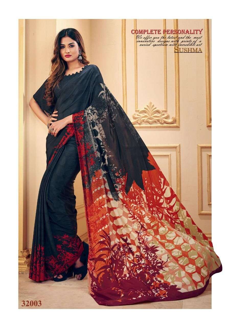 sushma black beauty vol 21 series 32001-32004 crape printed saris at lowest cost