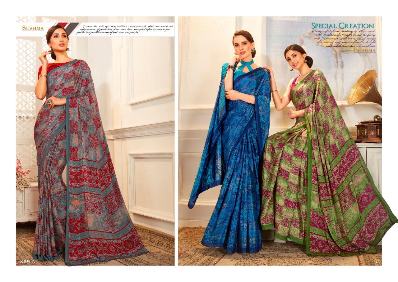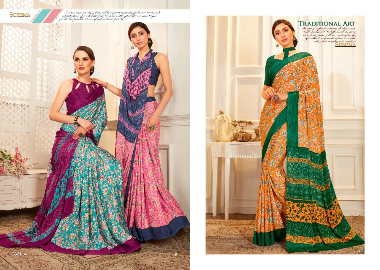 Sushma Silk Ethnic 8301 Series Smart Crape Saree At Wholesale Rate In India