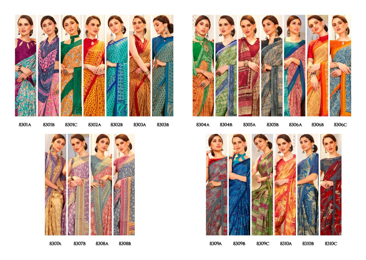 SILK ETHNIC CATALOG (8301 SERIES) SMART CRAPE 550/- 24 SAREES |
