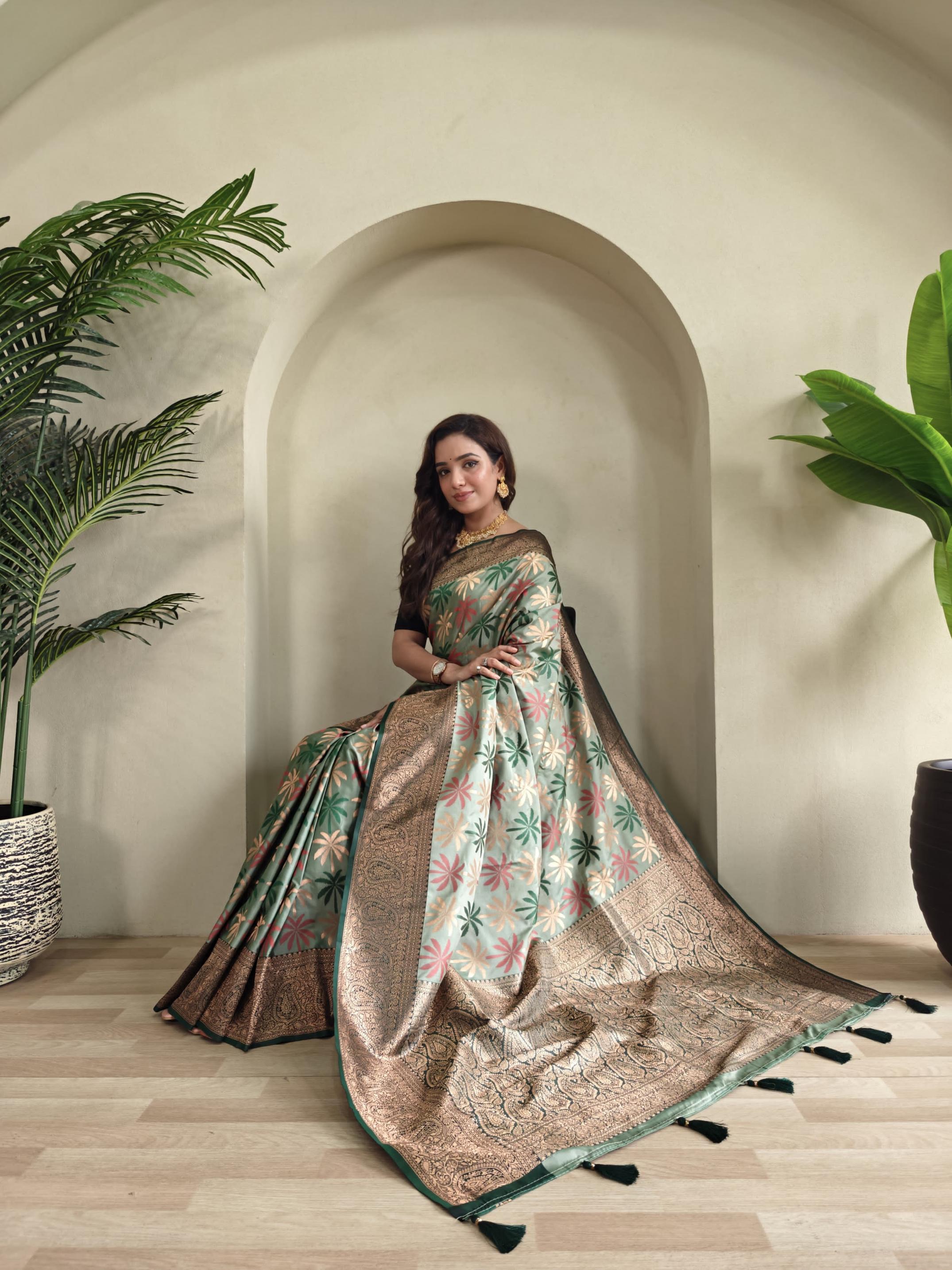Premium collection. Catalogue: Sushmita Description : Kanchi silk sarees with beautiful emboss weaving design all over saree with contrast border and Beautiful tassels. Teamed with a beautiful blouse; as shown in videos. Price :- 1450/- Full stock ready. |