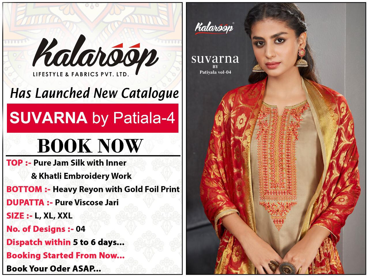 Suvarna By Patiyala Vol 4 By Kalaroop Jam Silk Readymade Salwar Kameez
