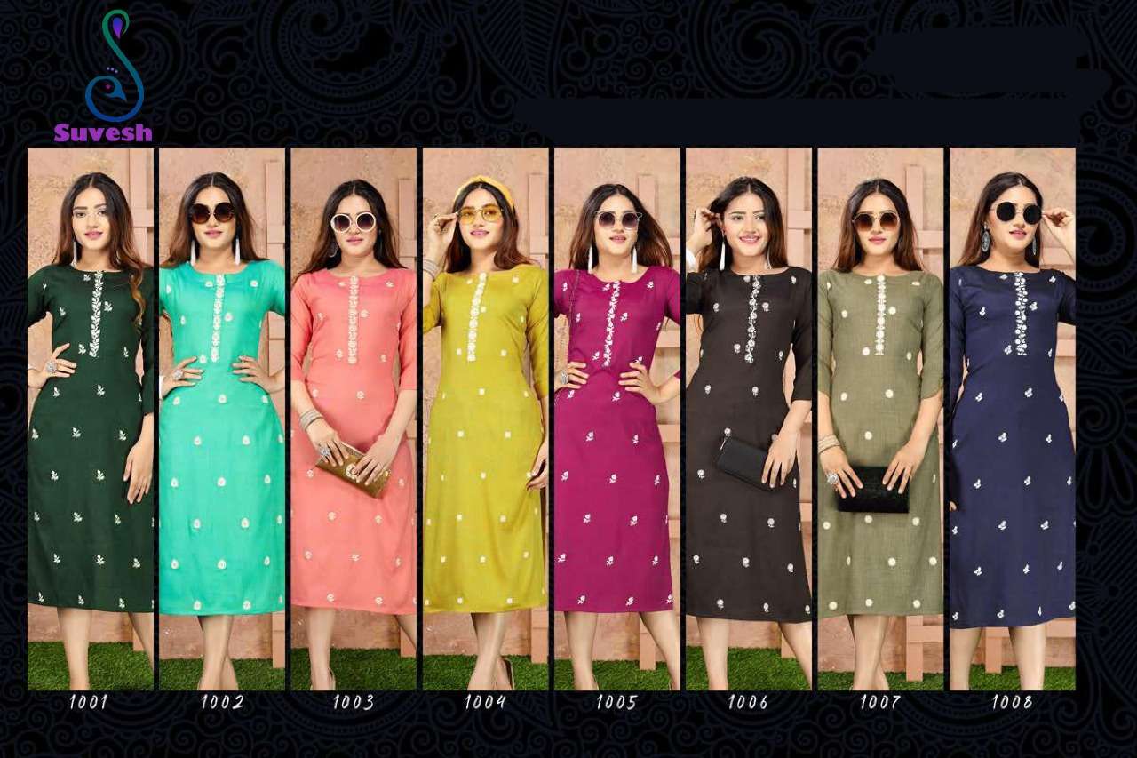 🟣 Brand :SUVESH Catalogue name - INFINITY ✨Details 👚 Fabrics : Rayon tow ton With work LENGHT 45, 🎗Size - M, L ,XL ,XXL , Designs - 8 pcs Rate : 3️⃣9️⃣5️⃣➕ 5% GST |