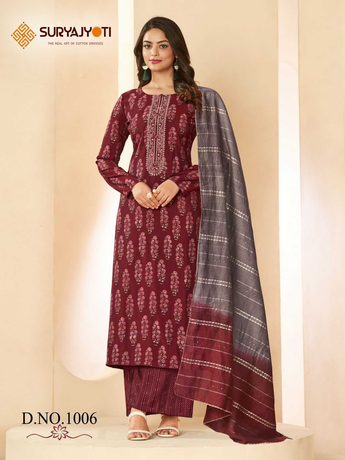 Suryajyoti Cotton Presents Latest Collection Launched on 28-03-2024. Presenting Beautiful collection of 8 PCS with Unstitched .