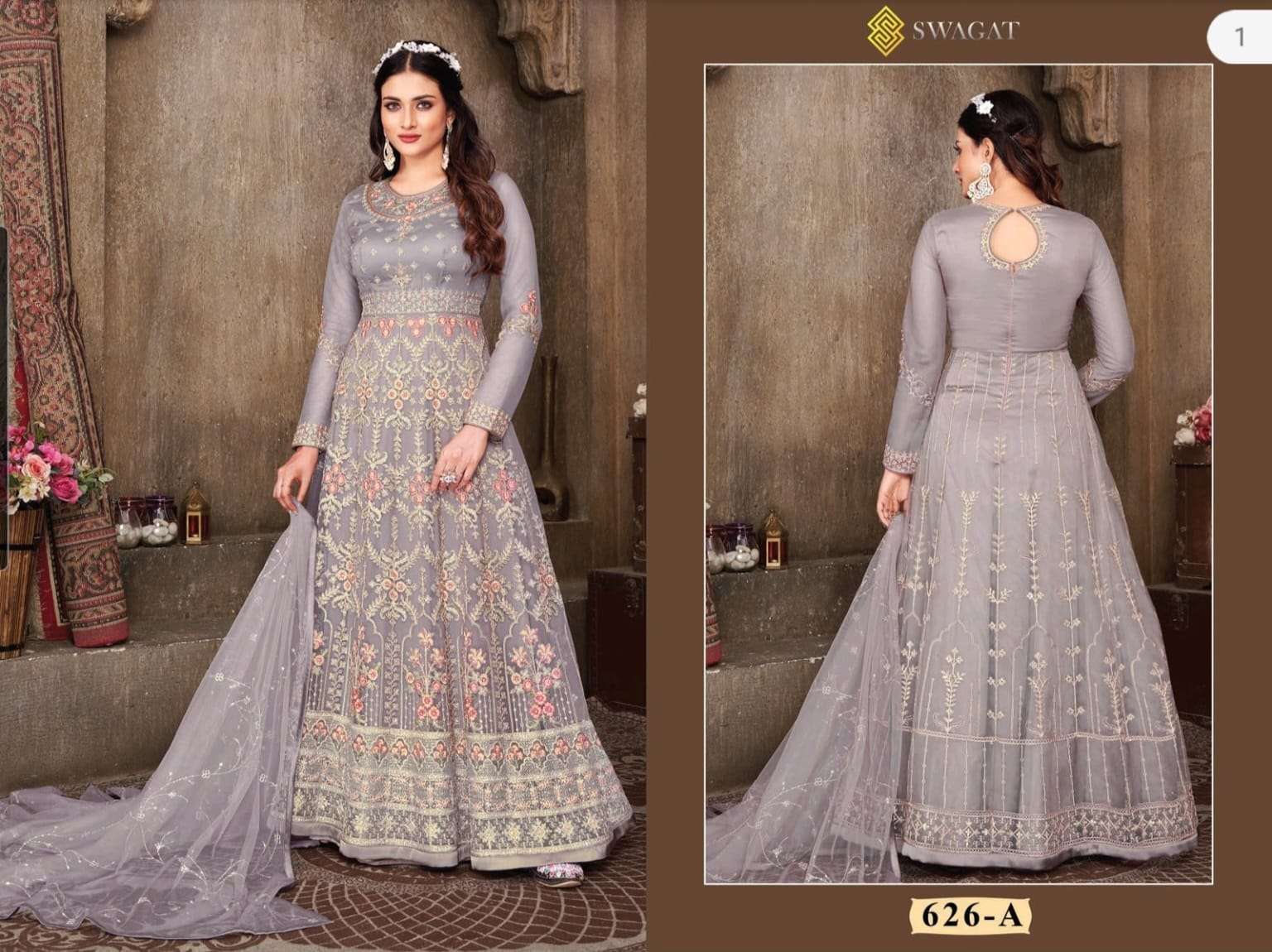 swagat 626a single design party wear unstitch long salwar kameez