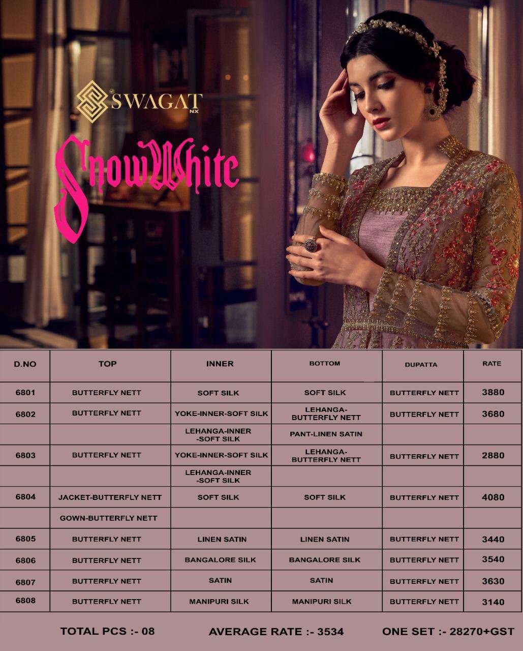 BOOK CATALOGUE SNOW WHITE 6801-6808 ON KRISHNA CREATION. CALL ON +91-8866778727.