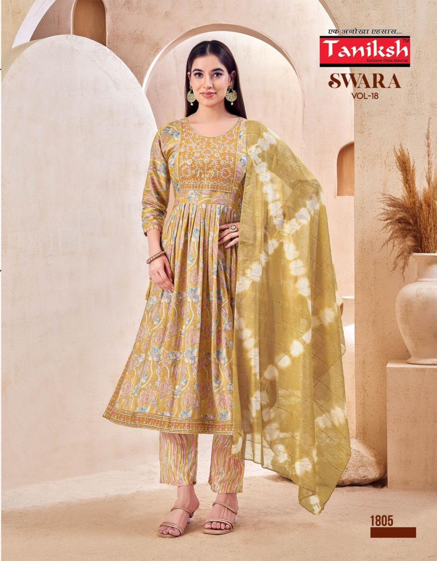 swara vol 18 by taniksh capsule rayon full stitch casual nayra suit for ladies