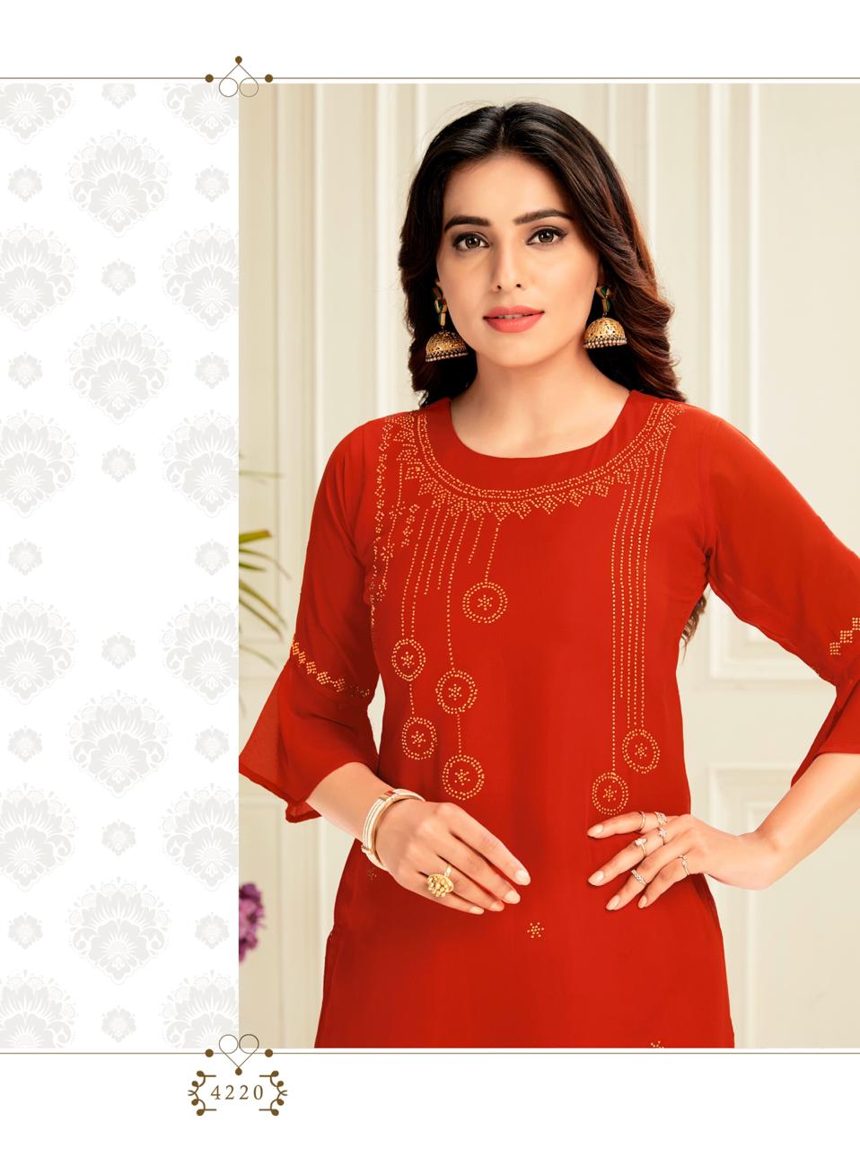 Swarovski Vol 4 By Rijiya Trends Georgette Exclusive Kurti With Plazzo Collections