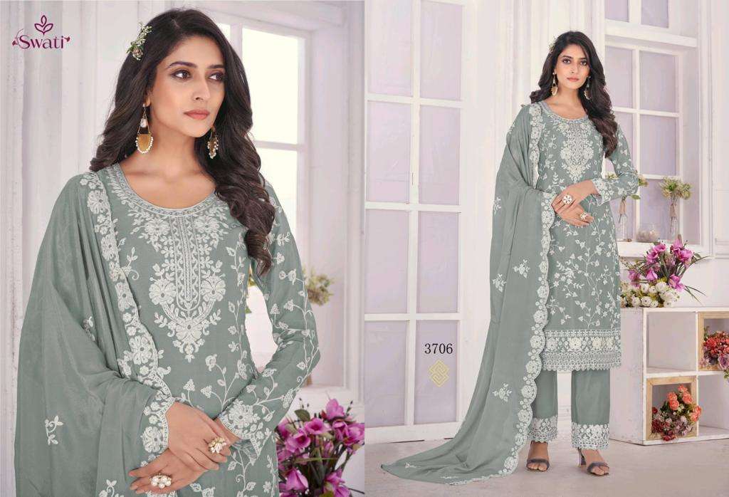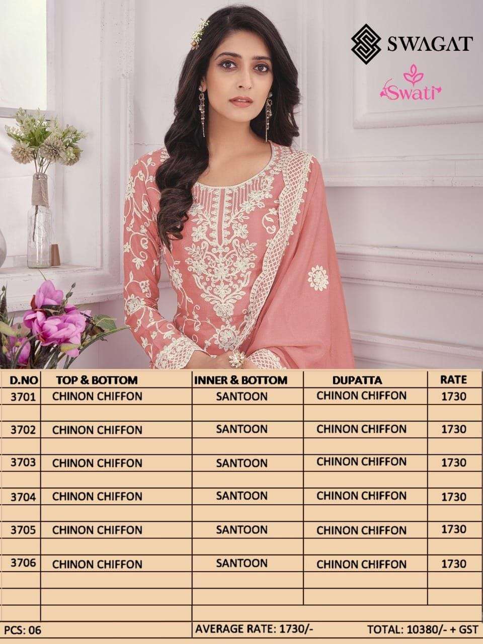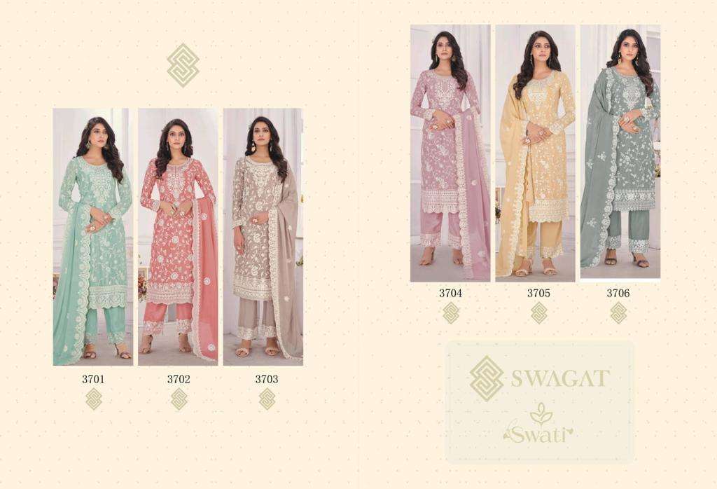 swati 3701-3706 by swagat chinon chiffon designer suit exporter