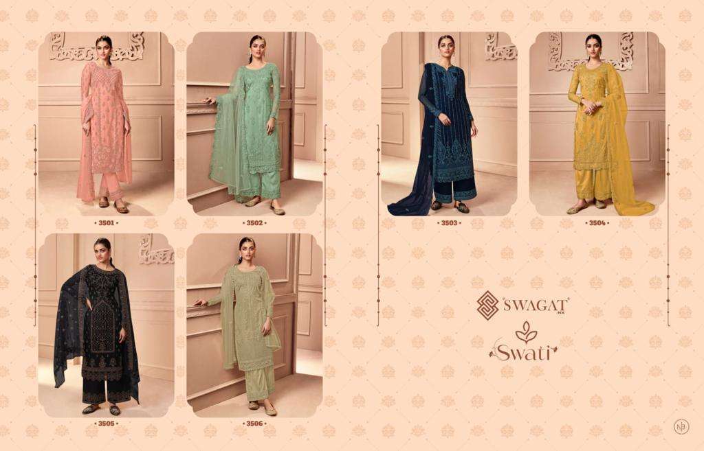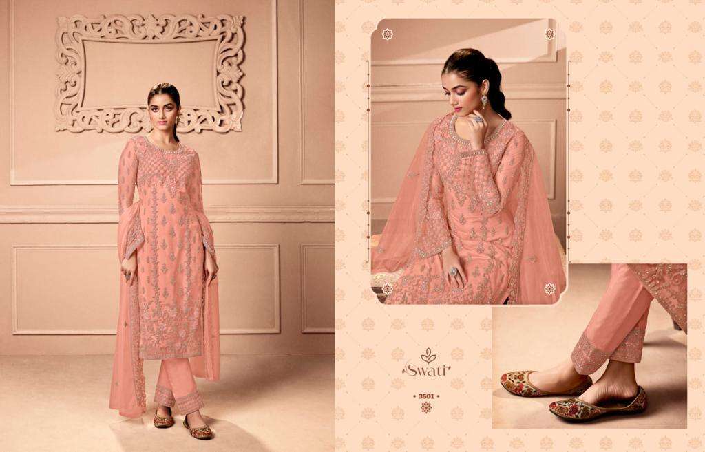 swati by swagat 3501-3506 series net with embroidery designer salwar kameez