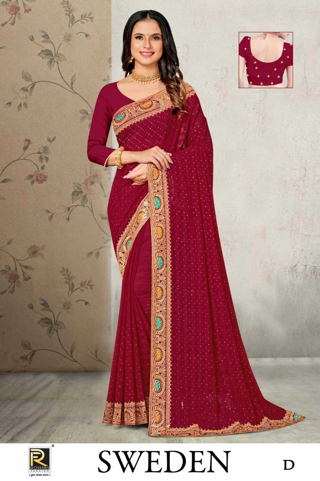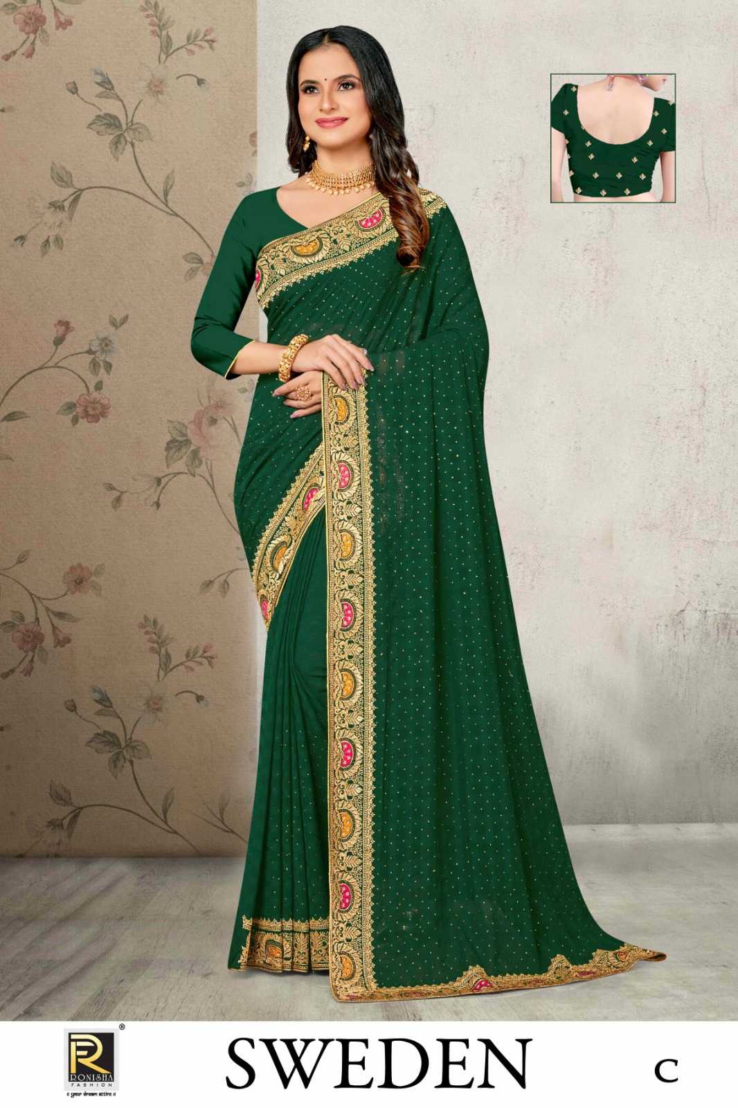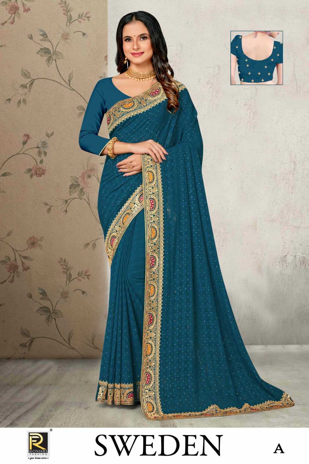 SWEDEN BY RANJNA SAREE FANCY FABRICS EMBROIDERY WORK AND SIROSKI DIAMOND WORK SUPER HIT COLLECTION