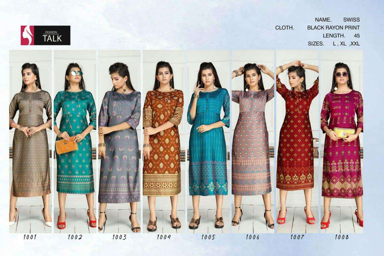 swiss vol.2 by fashion talk heaby black rayon kurti Cataolog Collection Wholesaler Best Rate In Ahmedabad Surat Chennai India Uk Usa Malaysia Singapore Canada Australia