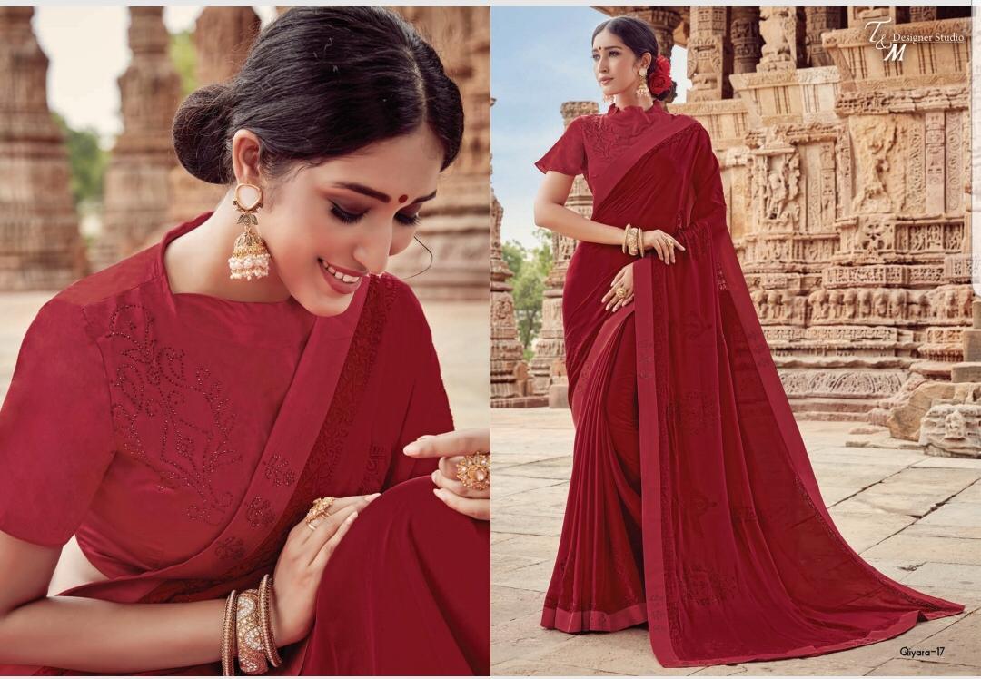 T And M Present Qiyara Fancy Georgette With Lace Heavy Look Saree Seller