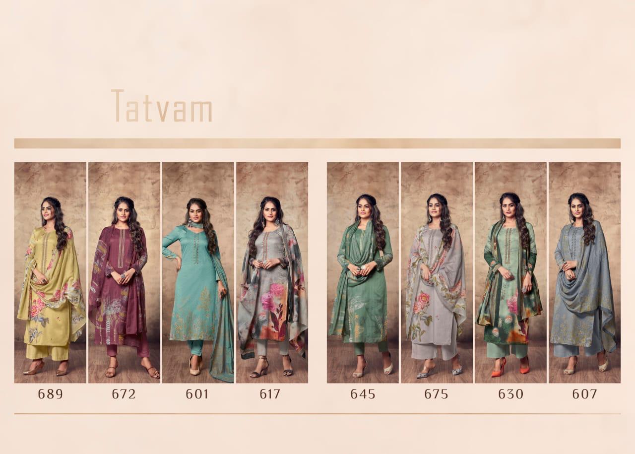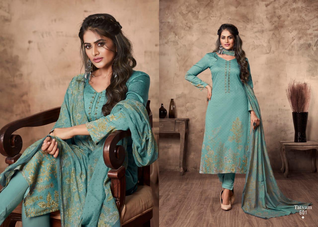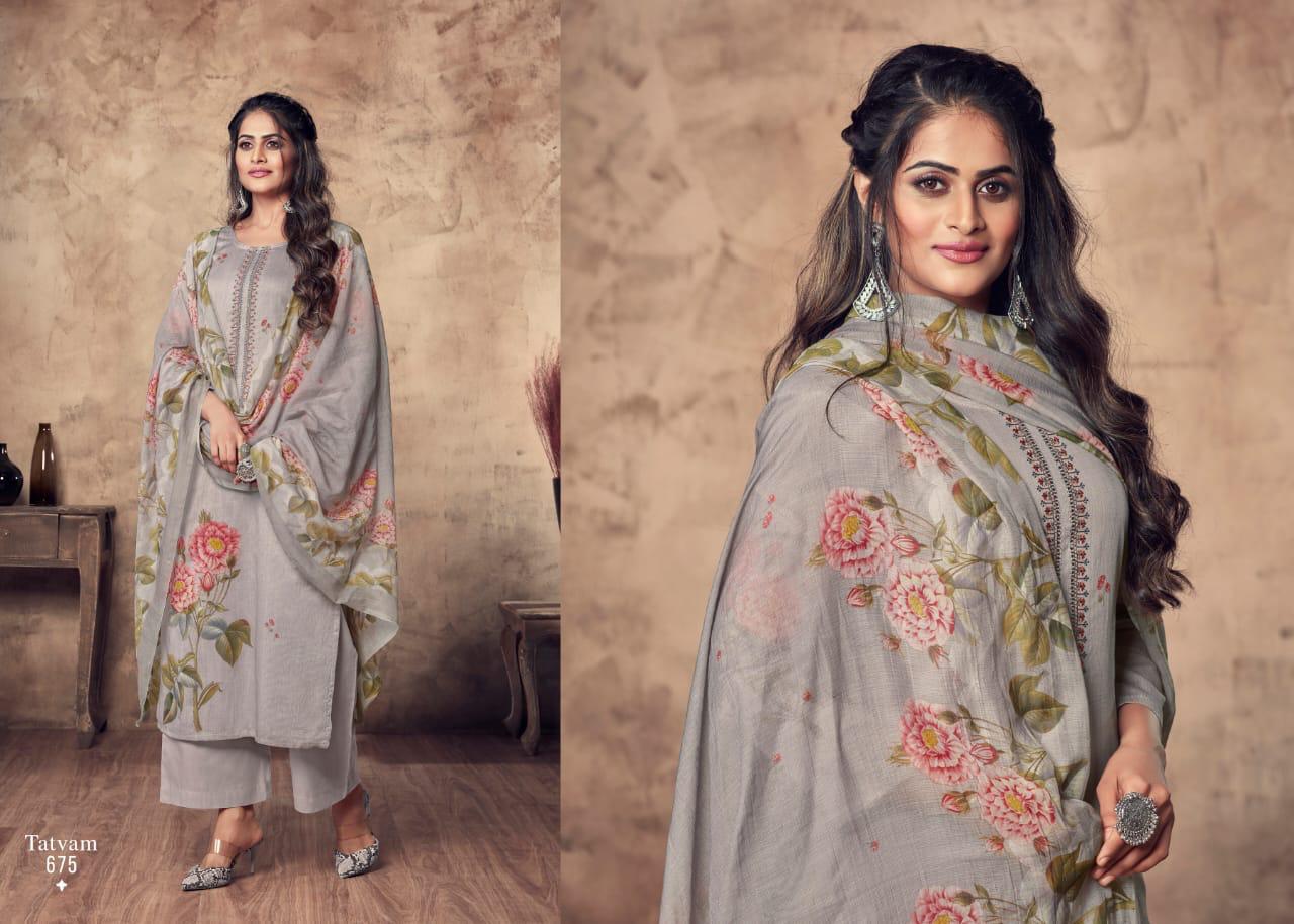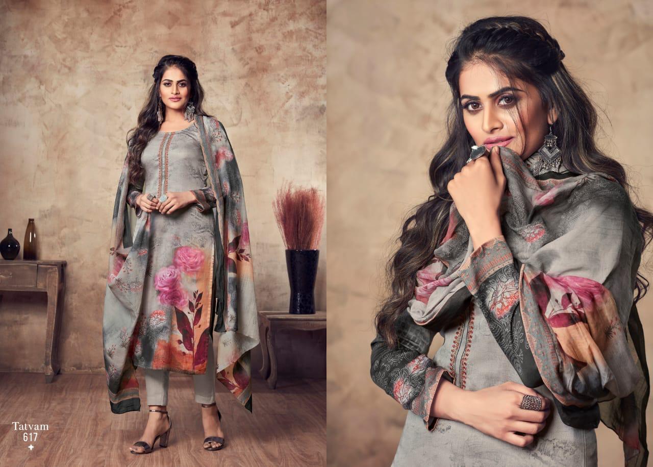 T And M Present Tatvam Cotton Satin Printed Embroidery Dress Materials