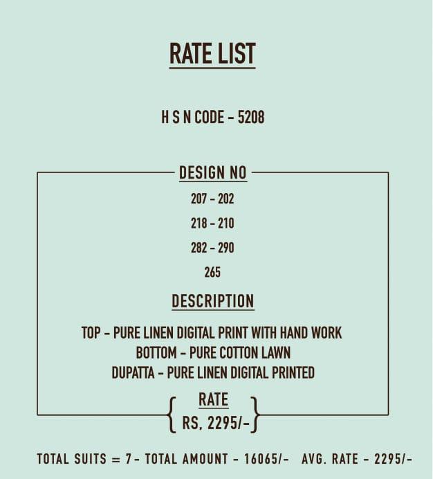 T&M Presents - SUMMER PEARL TOP- Pure linen digital print with hand work BOTTOM- Pure cotton lawn DUPATTA- Pure linen digital print RATE- 2295₹ |