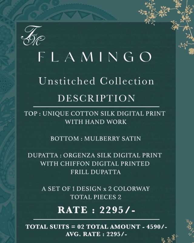 t&m designer flamingo 370 ab occasion wear handwork with print drees material