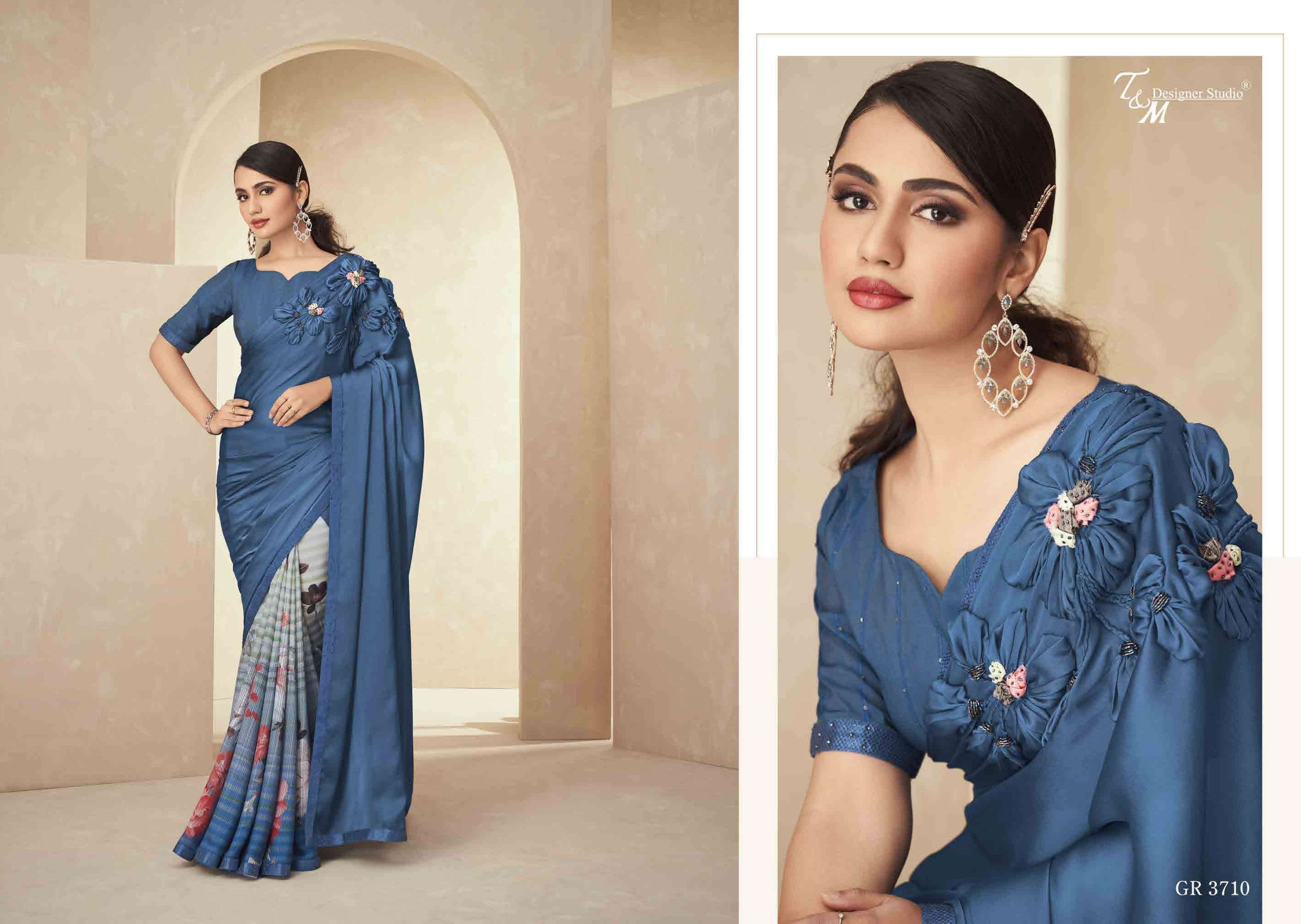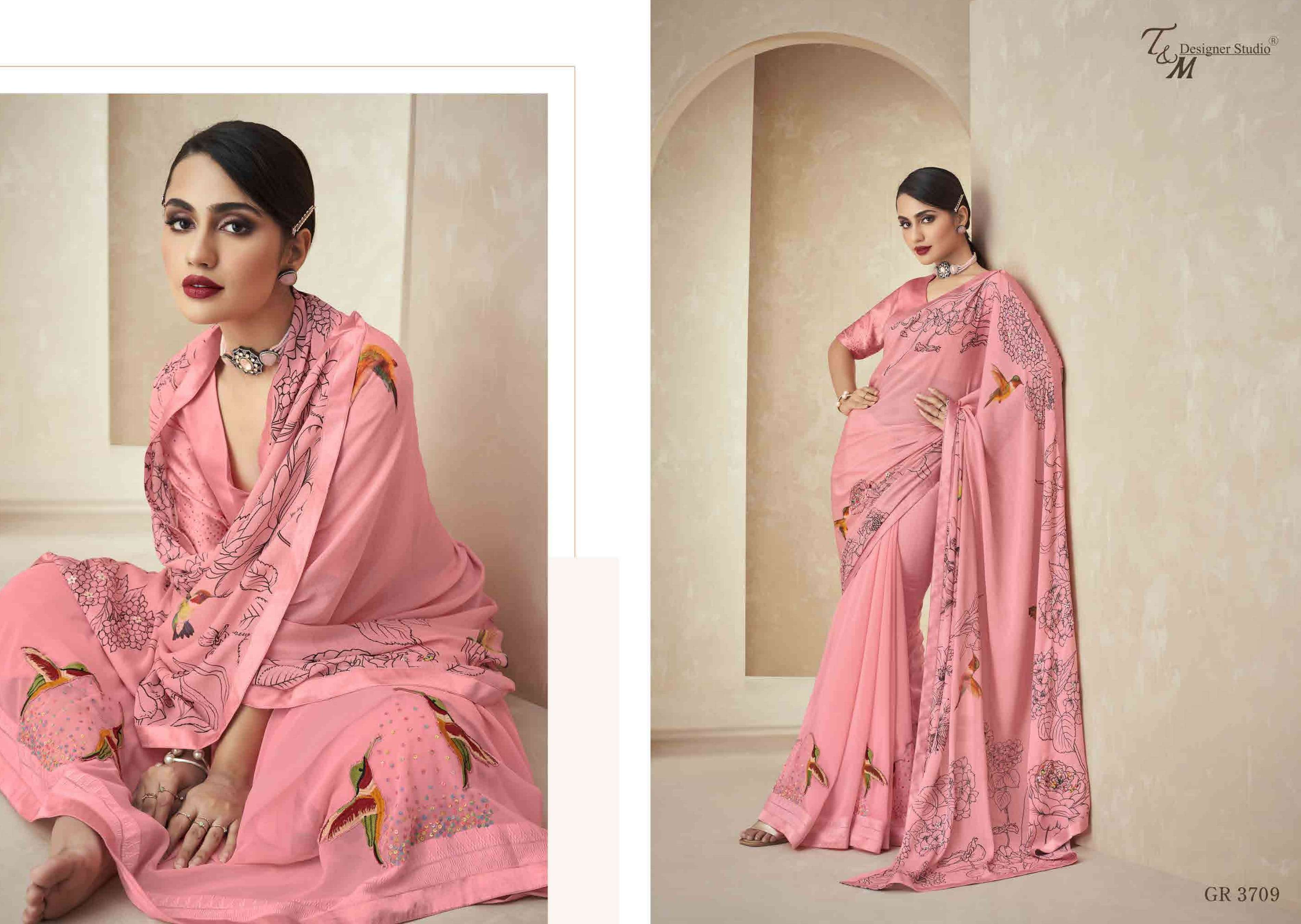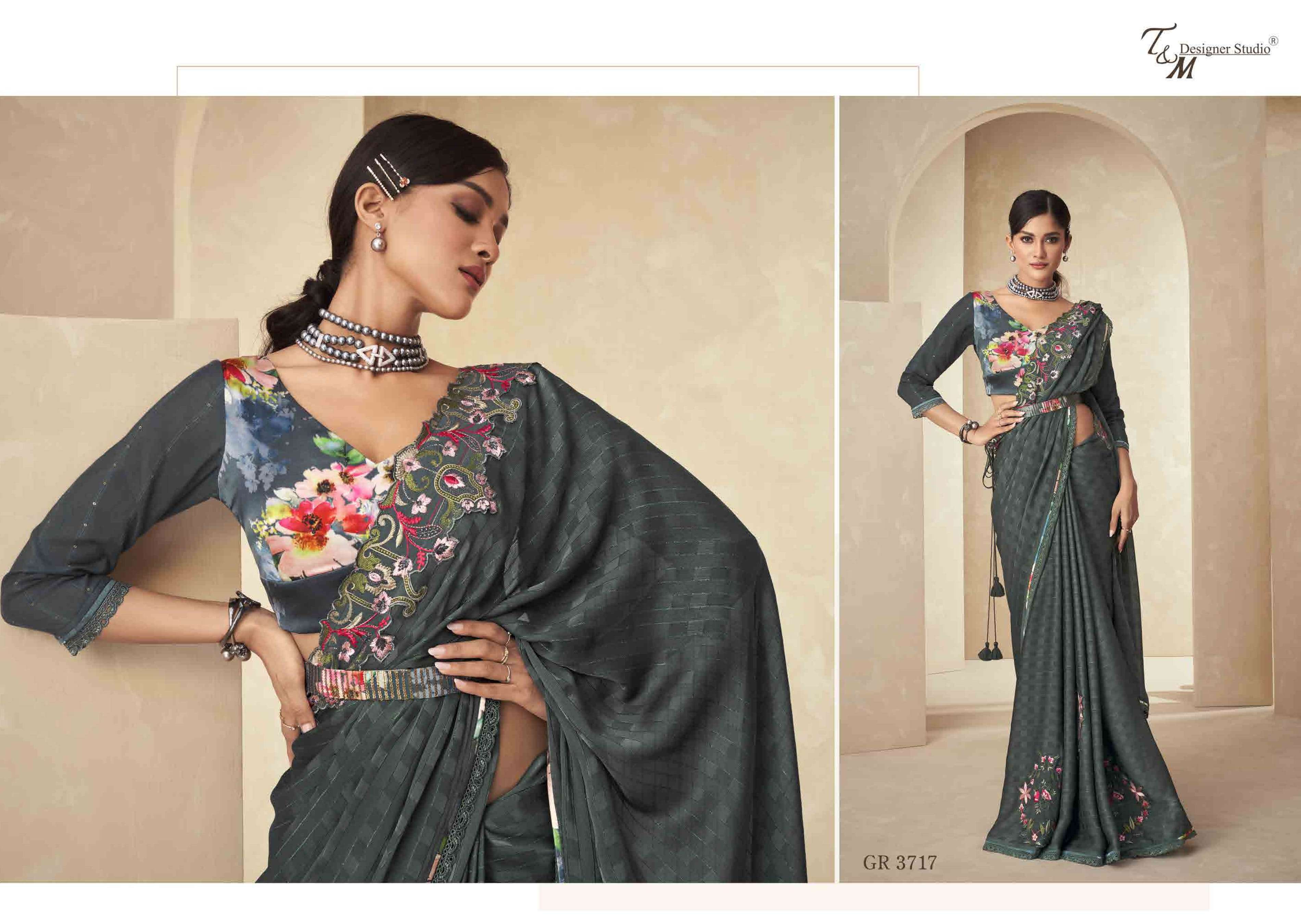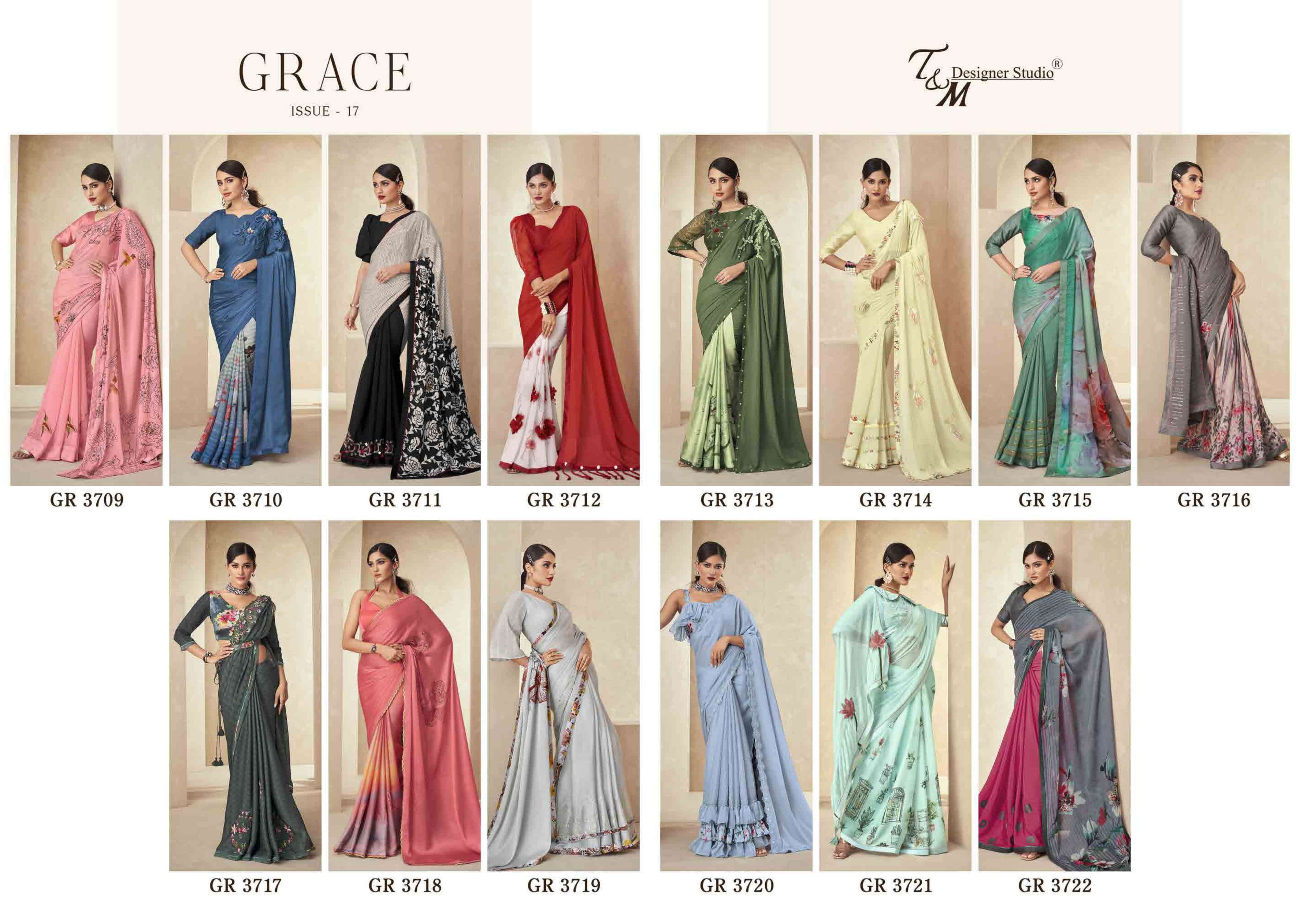 t & m designer grace vol 17 3709-3722 series branded saree wholesaler in surat