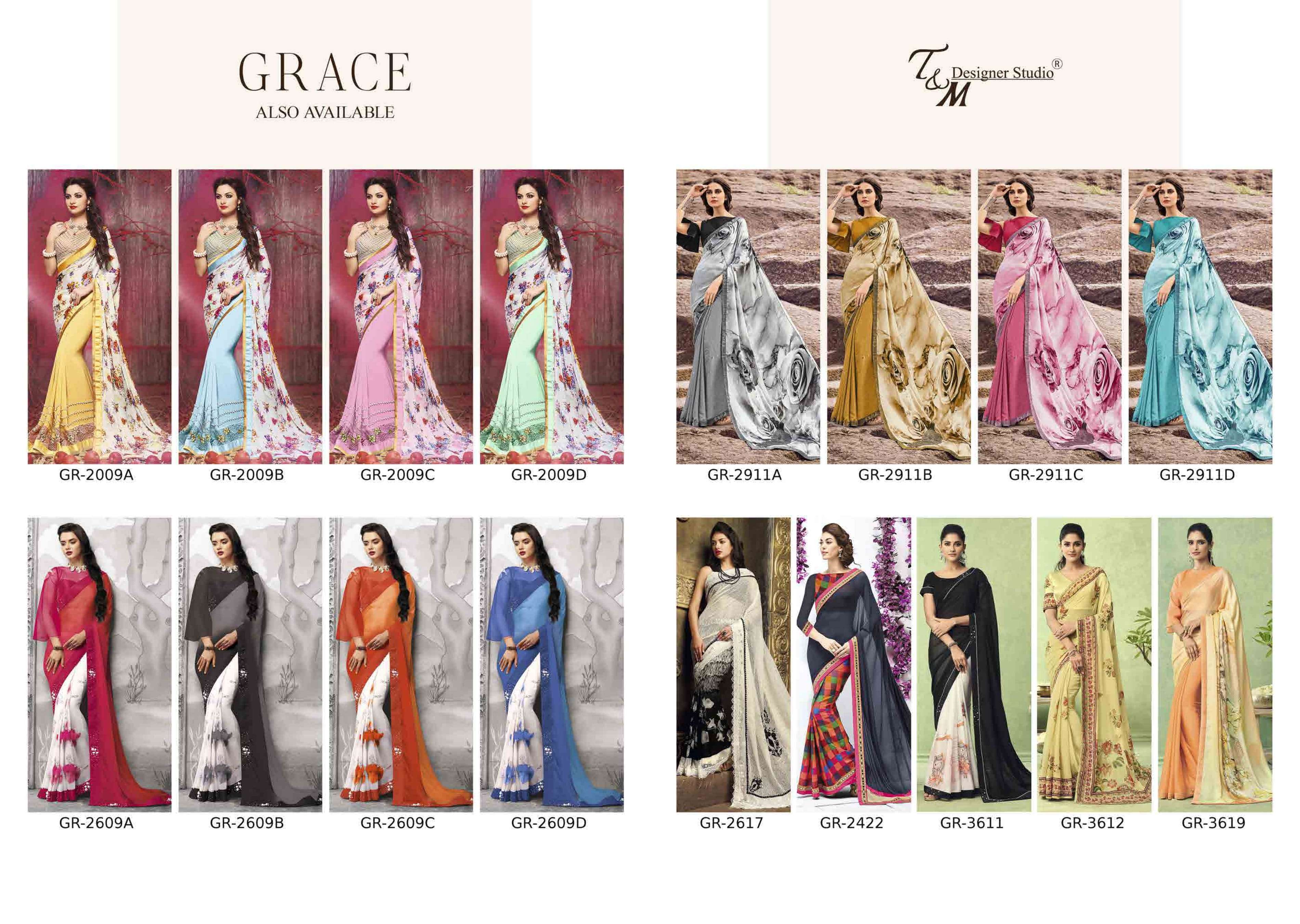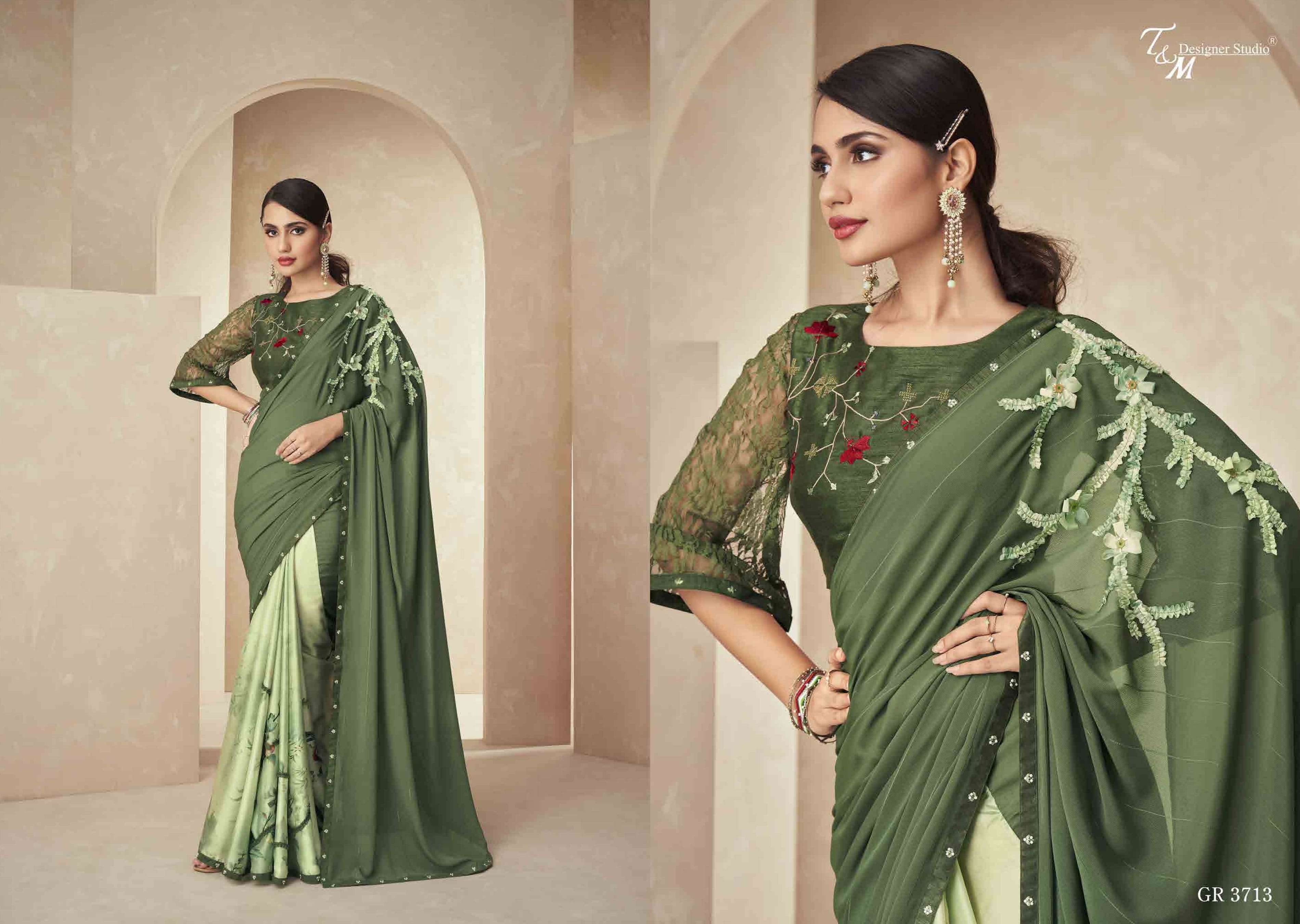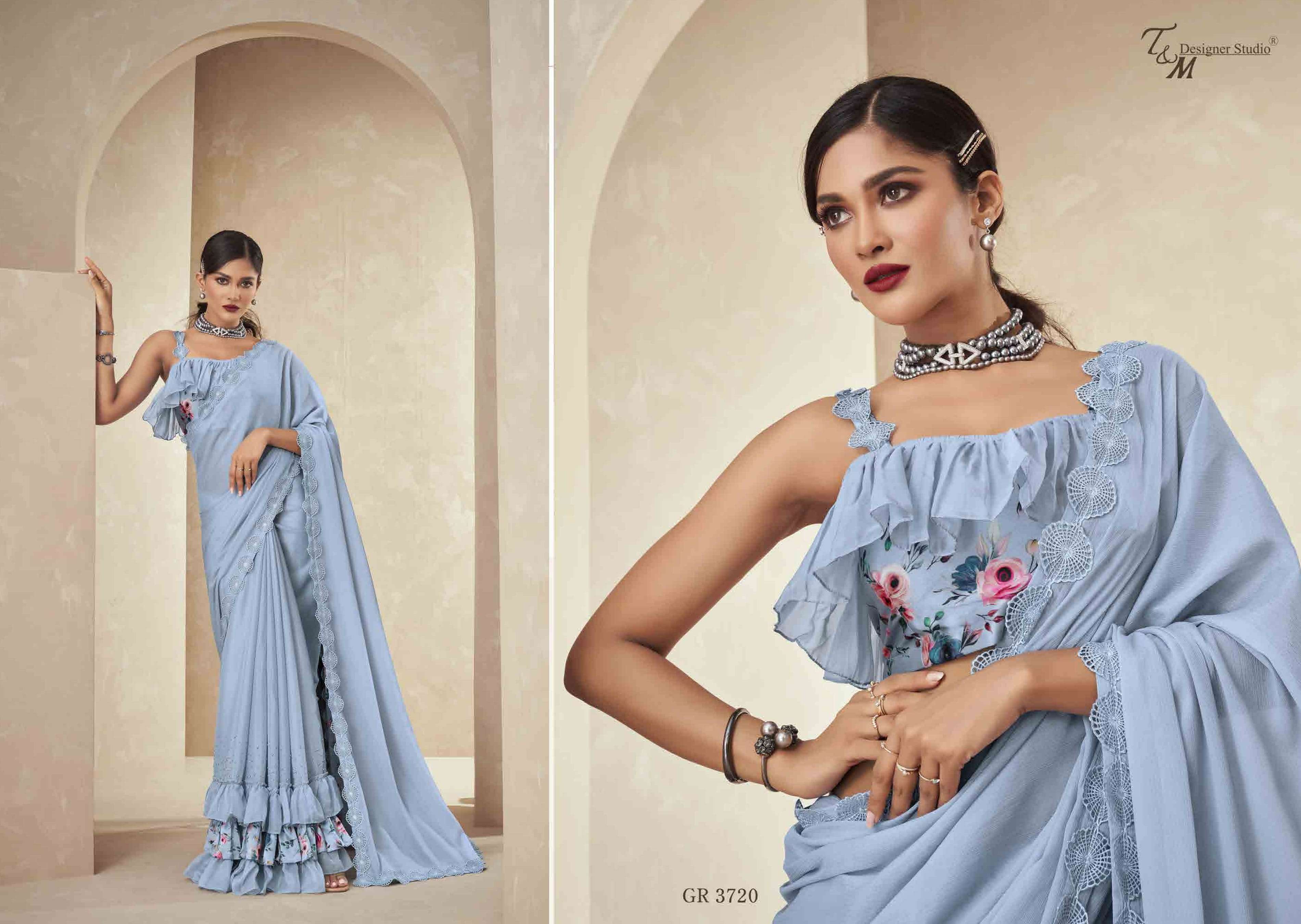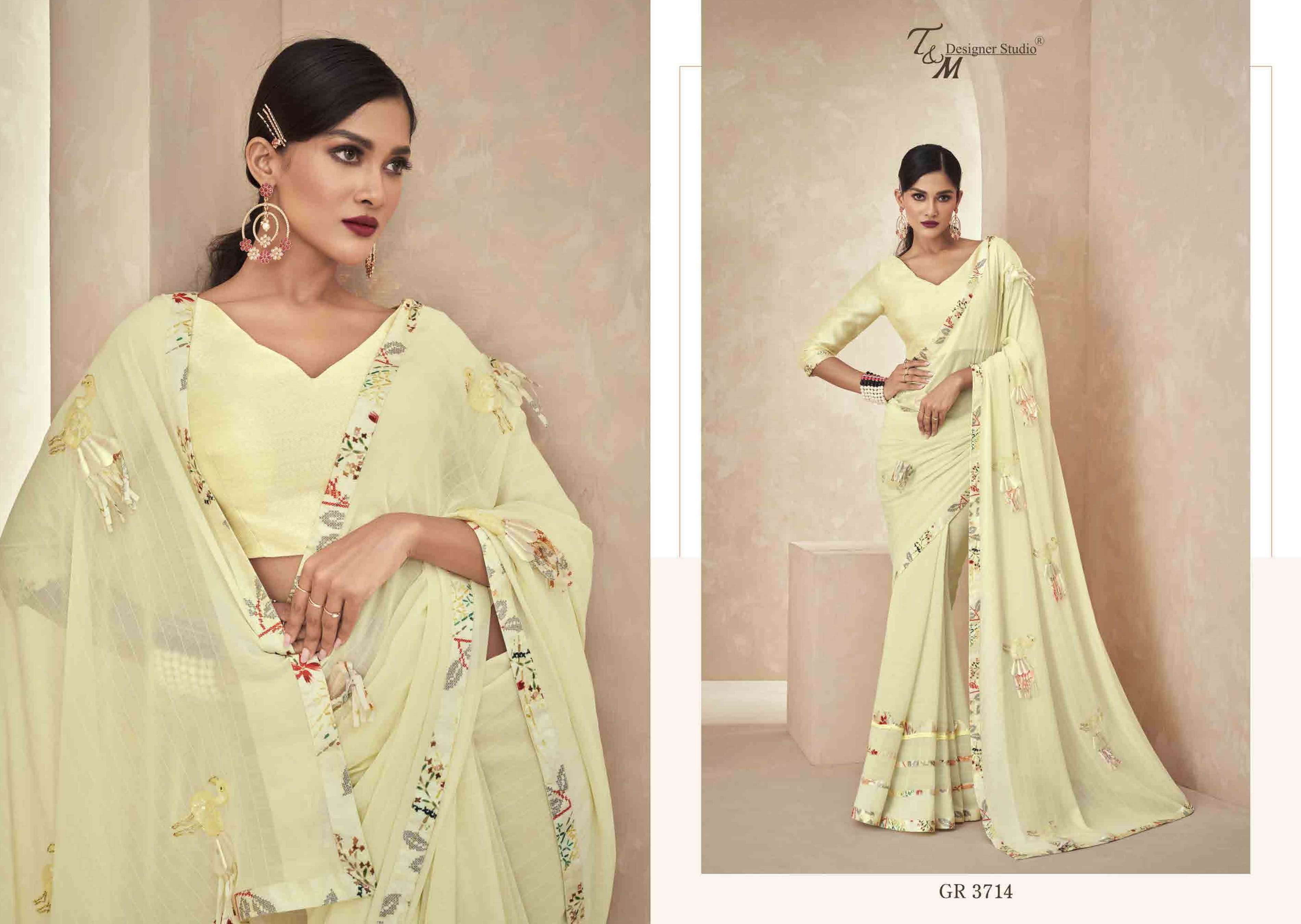 t & m designer grace vol 17 3709-3722 series branded saree wholesaler in surat
