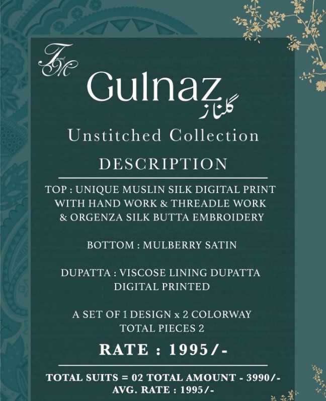 T and M Designer Presents Latest Collection Launched on 23-01-2024. Presenting Beautiful collection of 2 PCS with Unstitched .