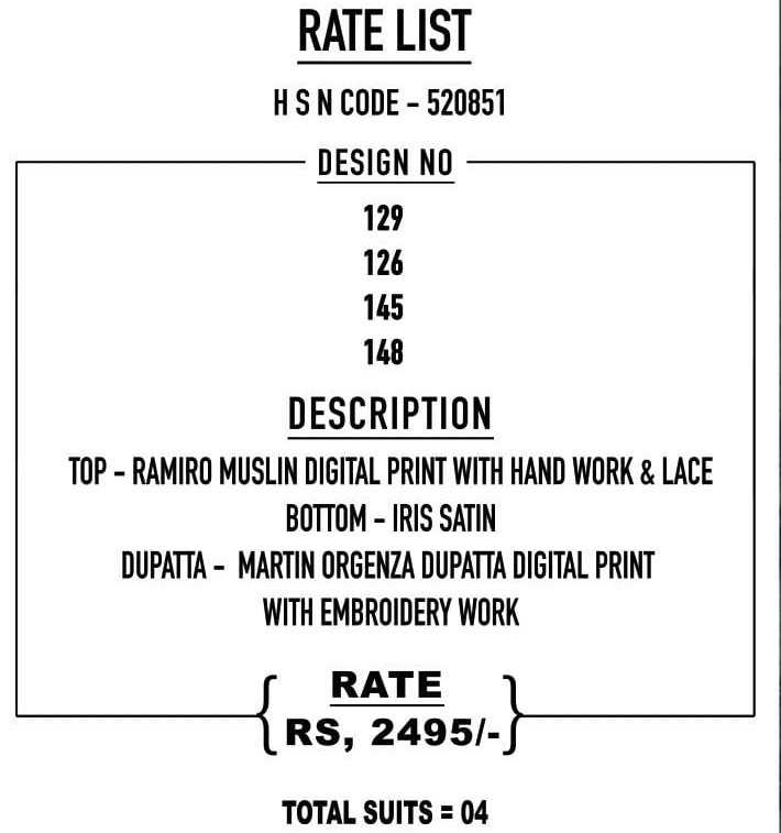 T&M TOP - RAMIRO MUSLIN DIGITAL BOTTOM - IRIS SATIN DUPATTA - MARTIN ORGENZA DUPATTA DIGITAL PRINT RATE: GST EXTRA Set to set |