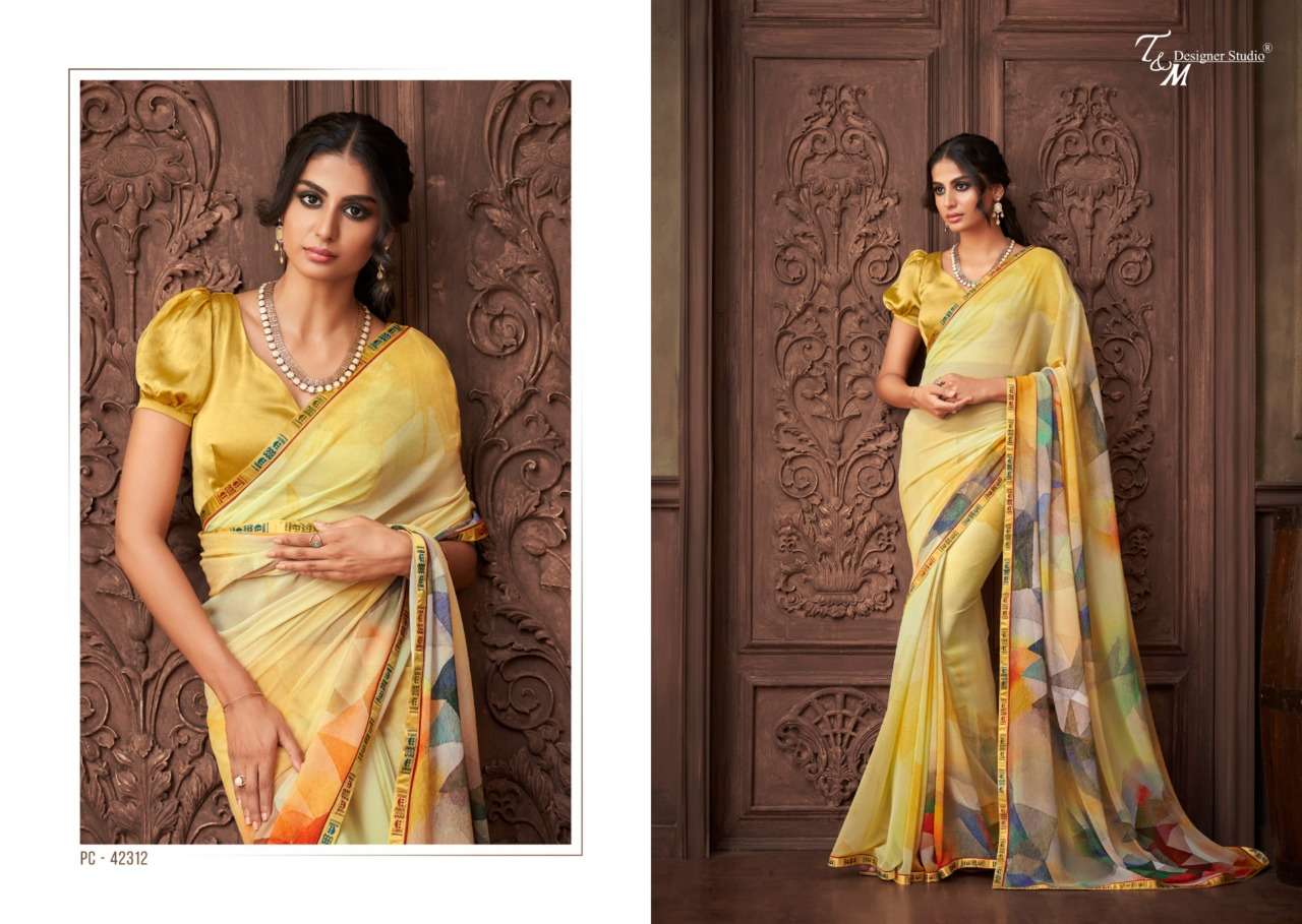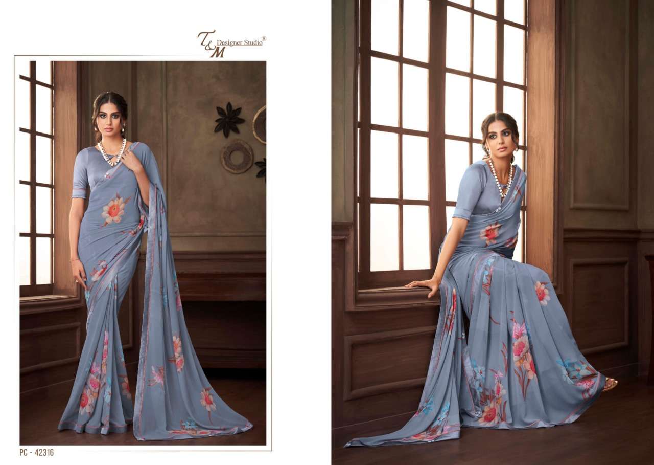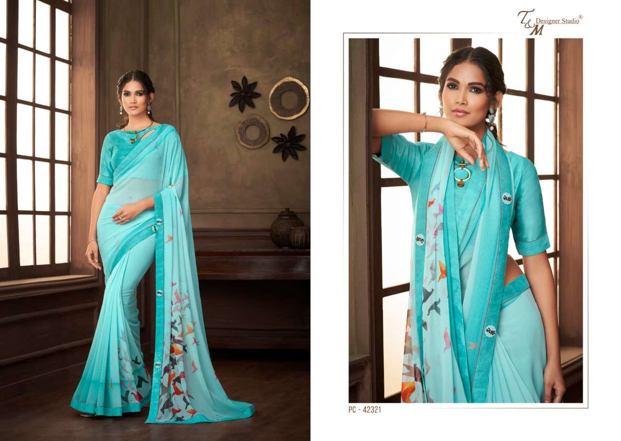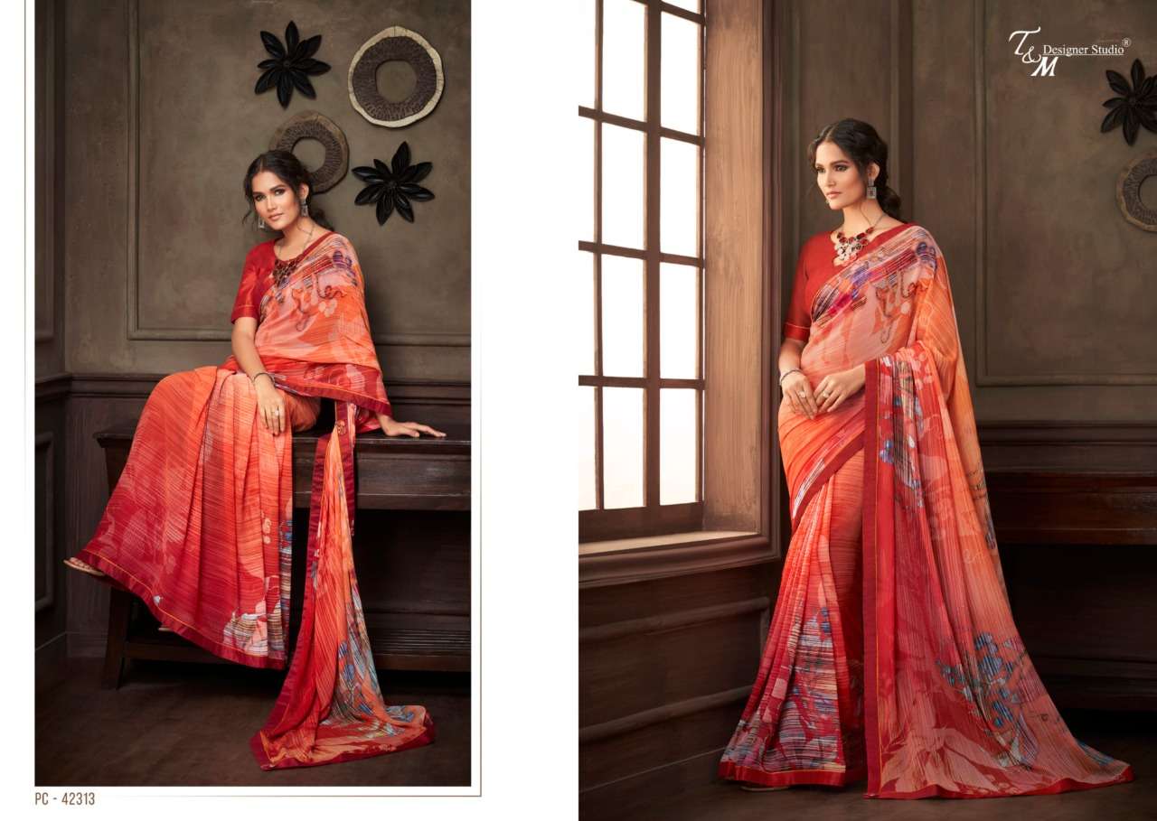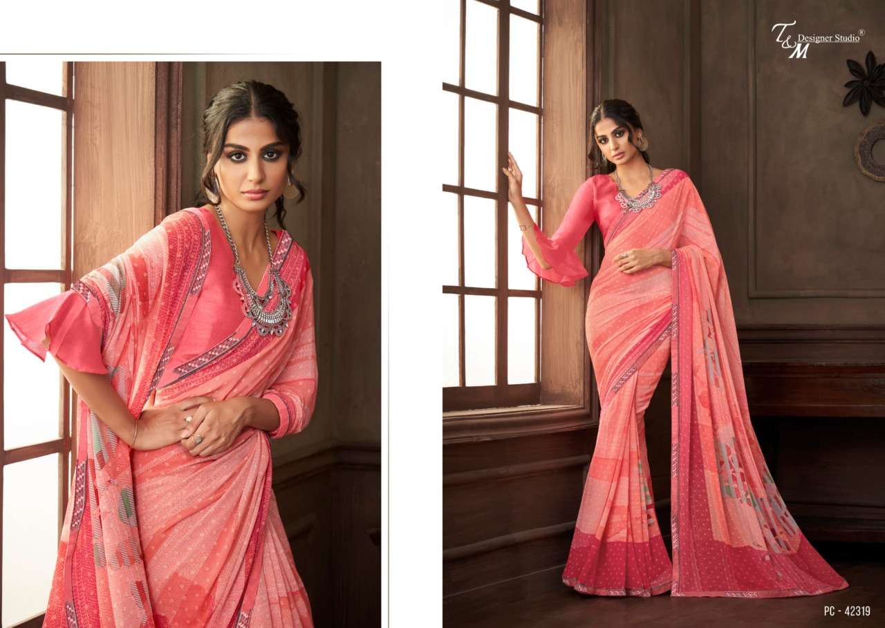 t & m designer panche 23 georgette fancy elegant ethnic wear saris designs collection