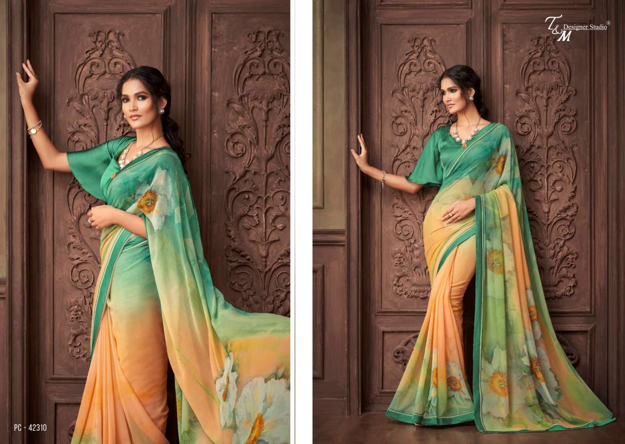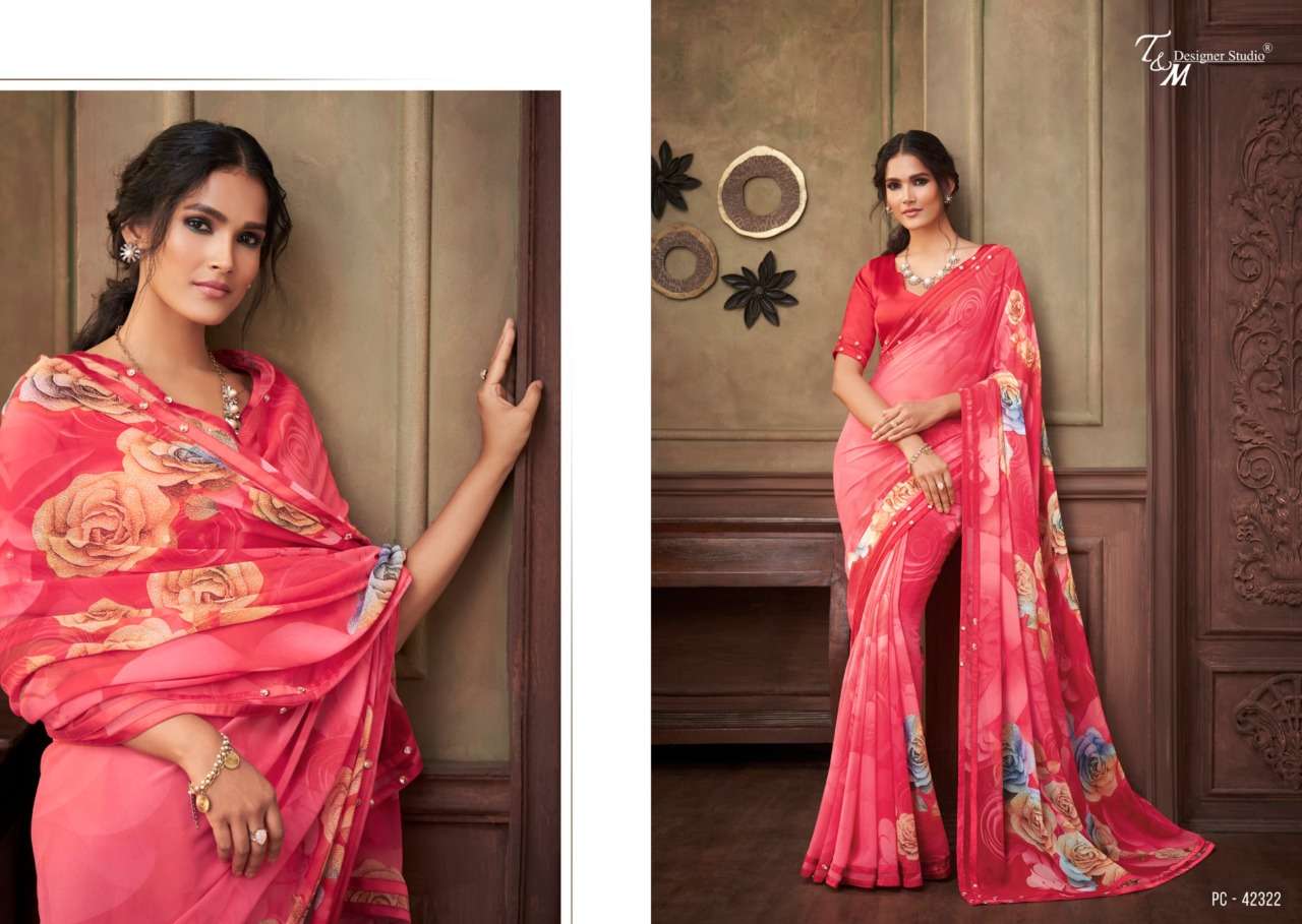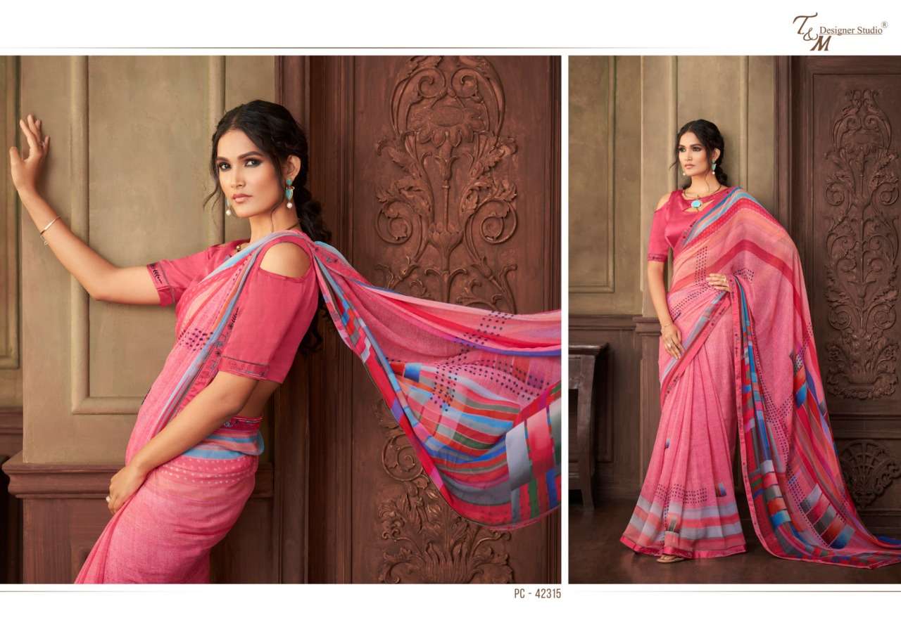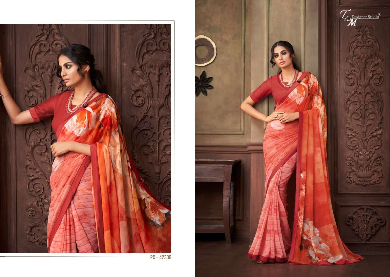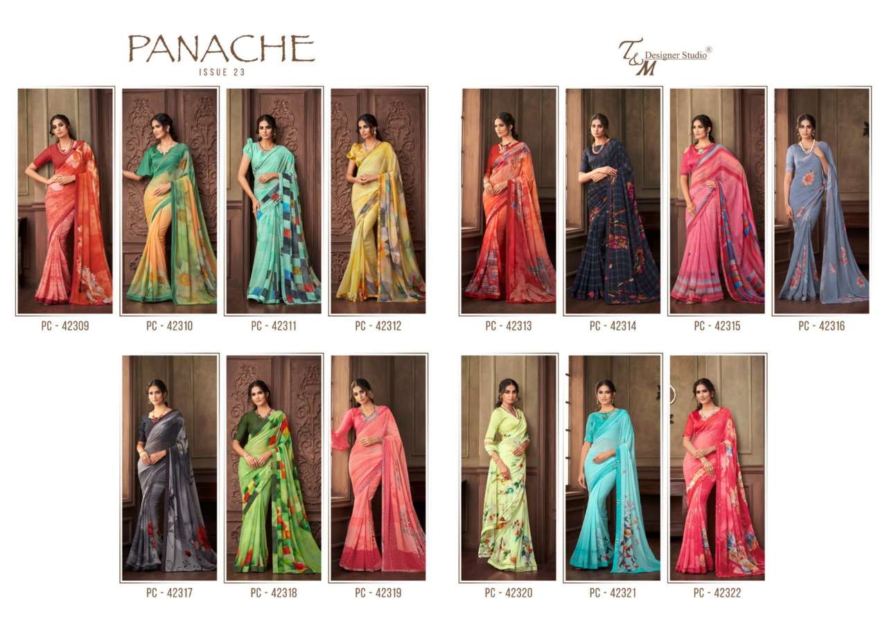 t & m designer panche 23 georgette fancy elegant ethnic wear saris designs collection