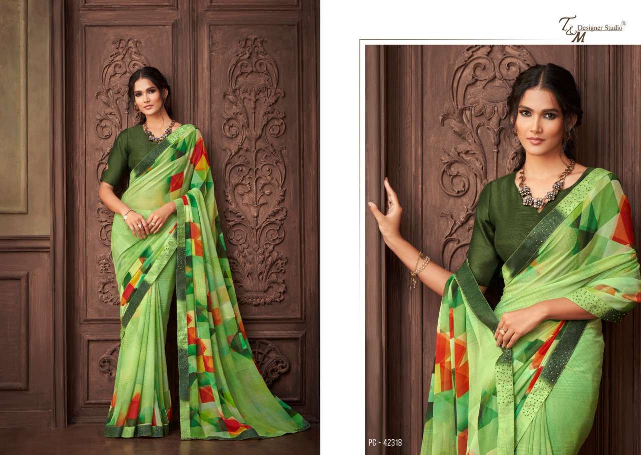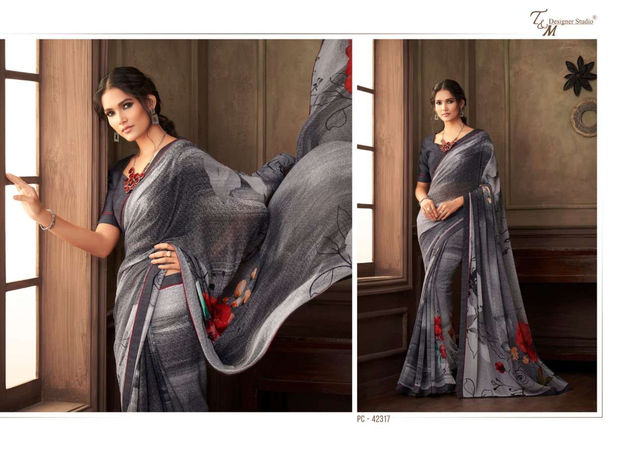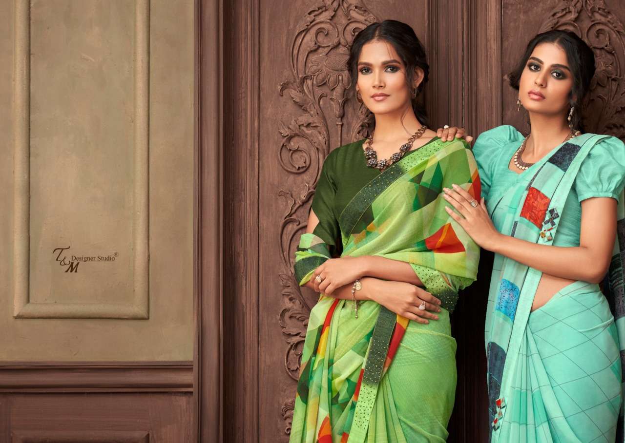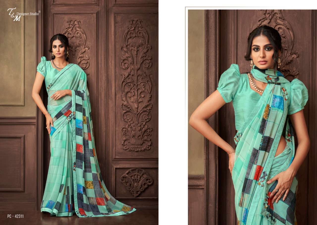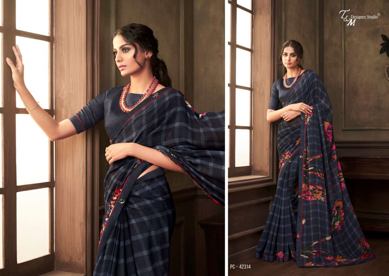 t & m designer panche 23 georgette fancy elegant ethnic wear saris designs collection