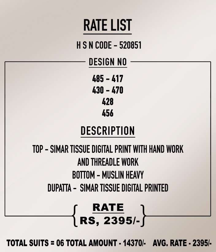 T and M Designer Presents Latest Collection Launched on 03-10-2023. Presenting Beautiful collection of 6 PCS with Unstitched .