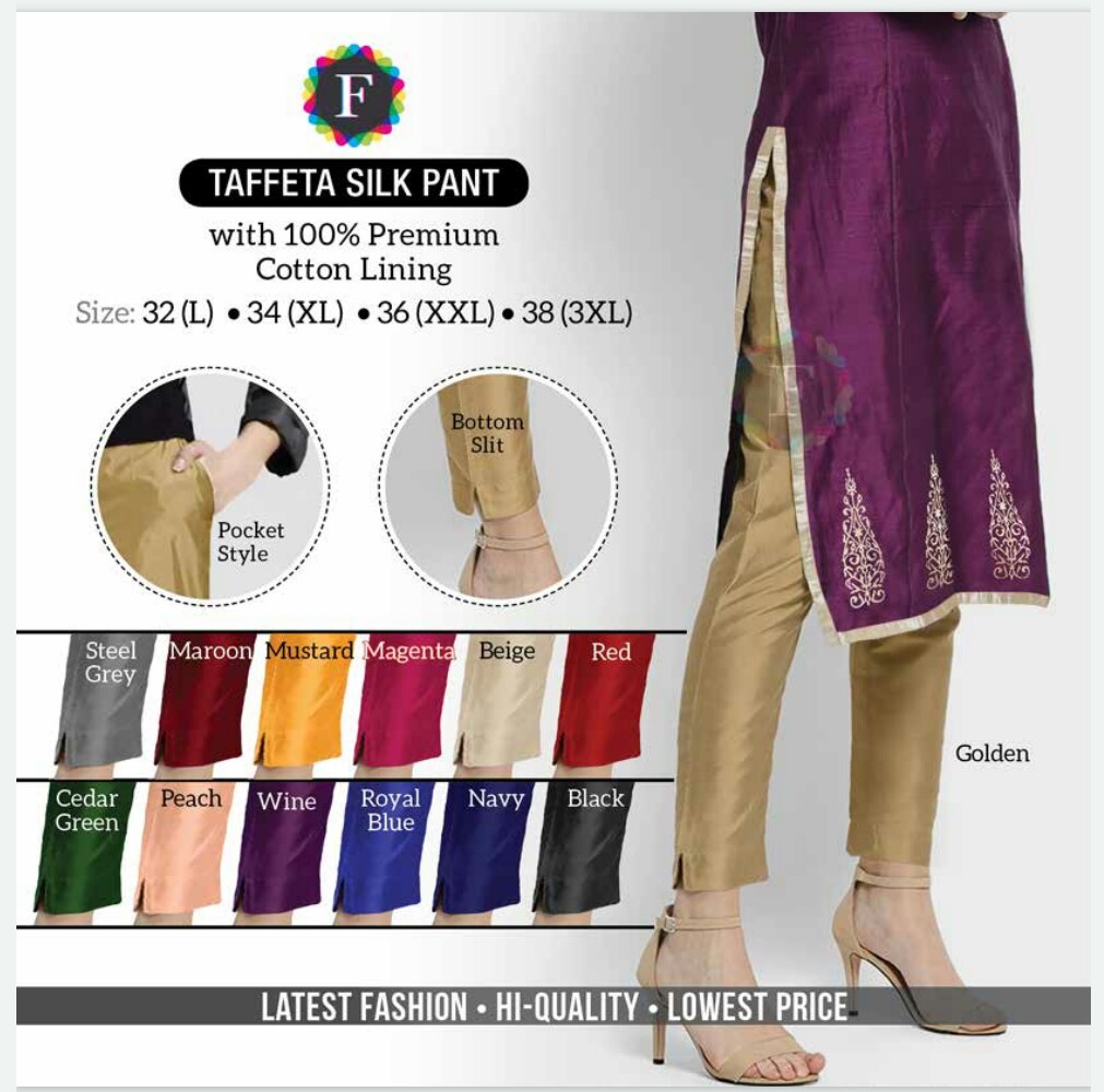 BOOK CATALOGUE TAFFETA SILK PANT ON KRISHNA CREATION. CALL ON +91-8866778727.