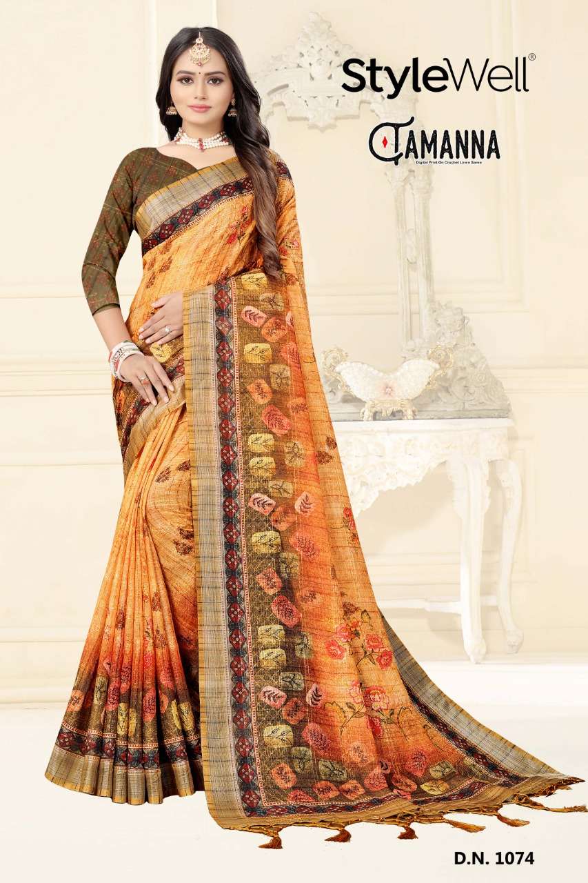 🆕!! New Saree Catalogue Launch !!🆕 Tamanna Digital Print on Crochet Linen Sarees |