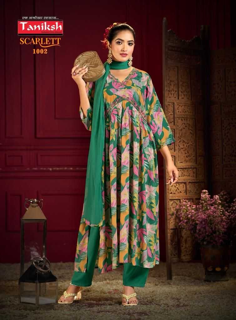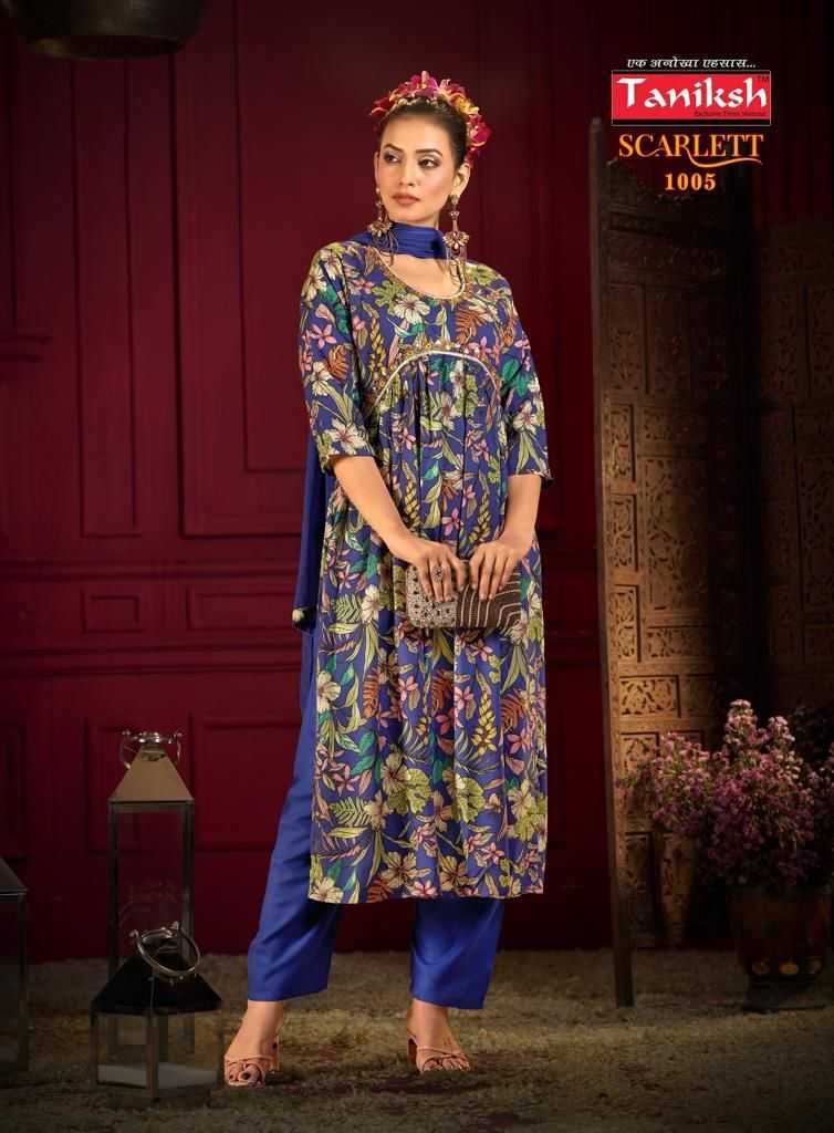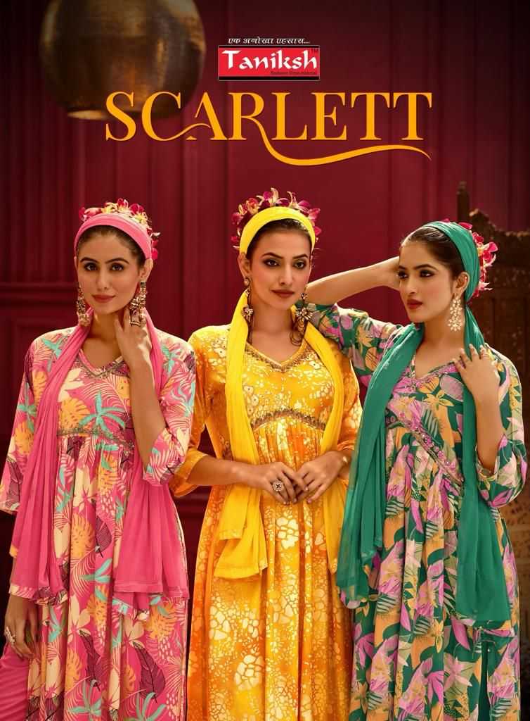 taniksh launch scarlett rich fancy alia cut kurti with pant and dupatta catalog