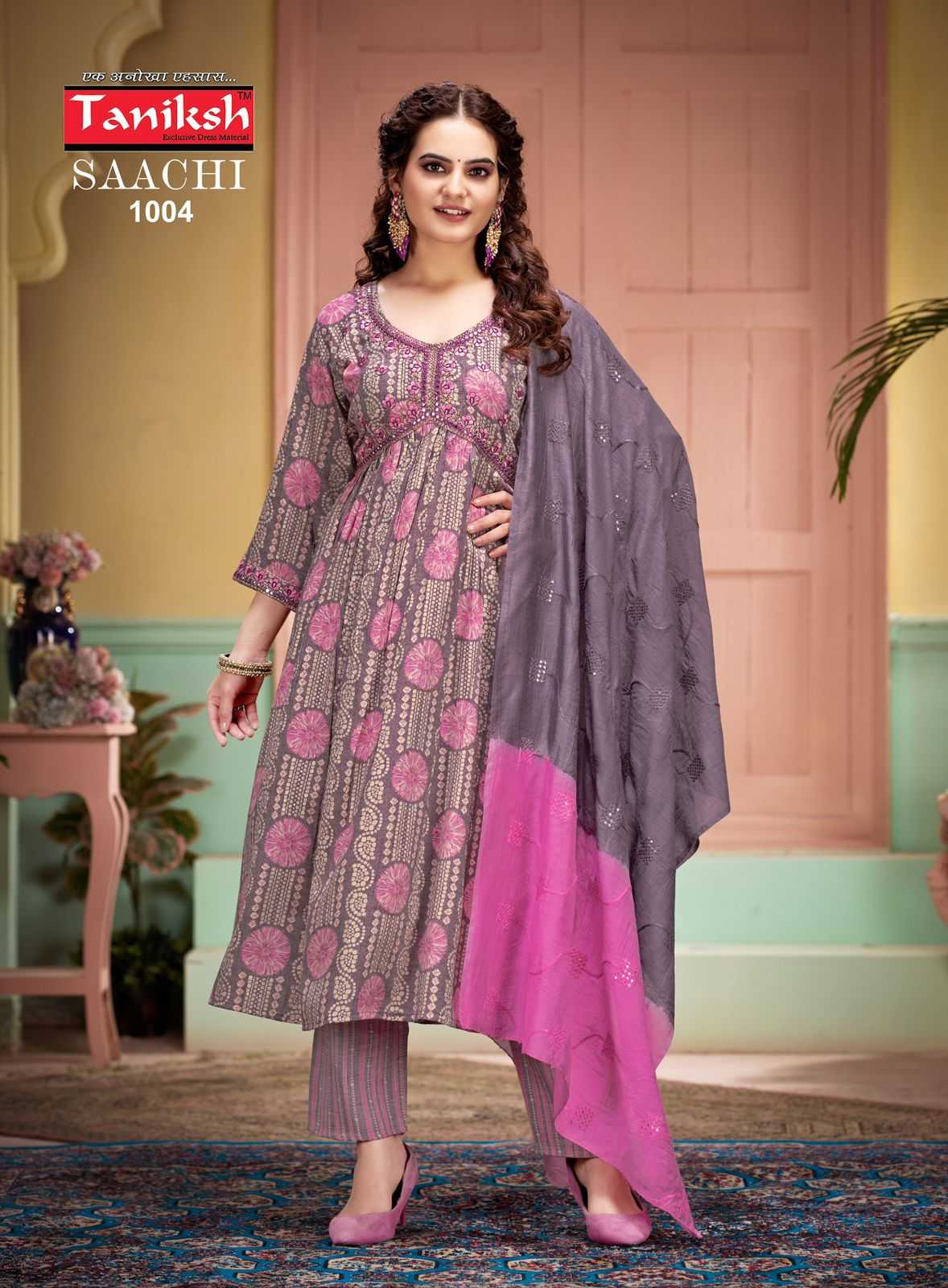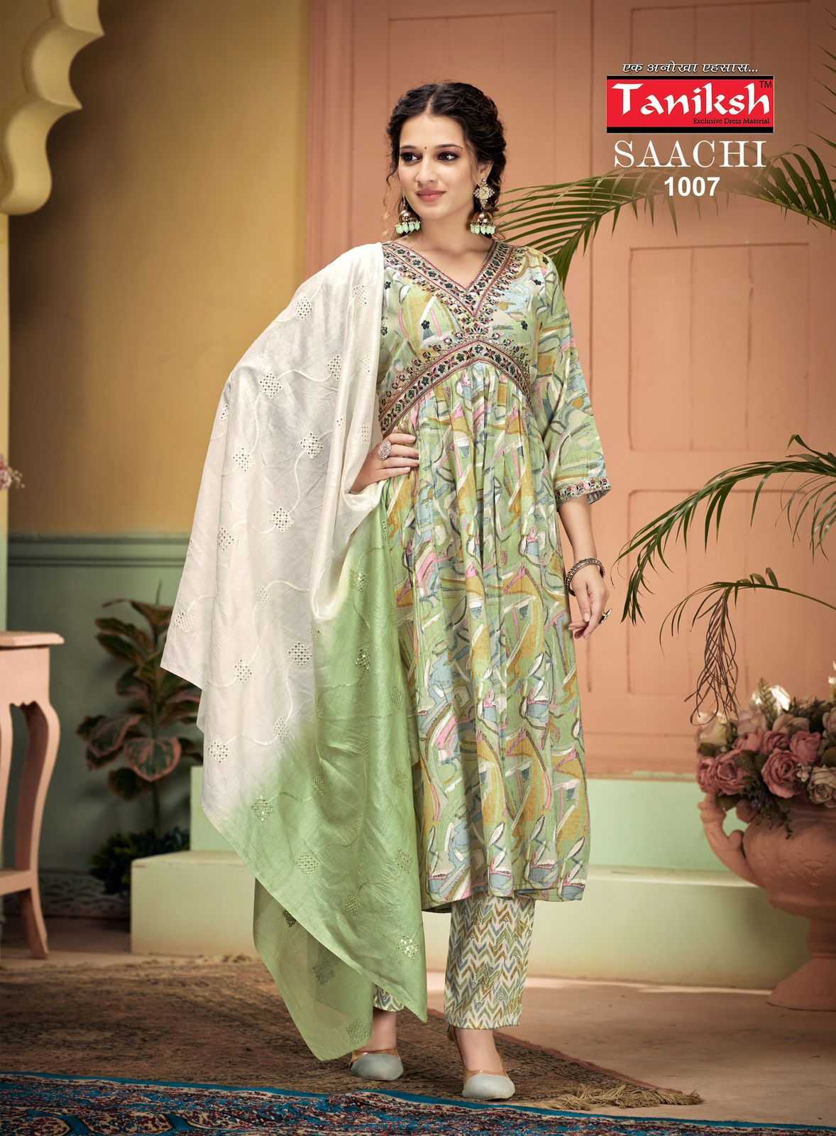 taniksh saachi vol 1 fullstitch amazing alia cut embroidery work kurti pant dupatta