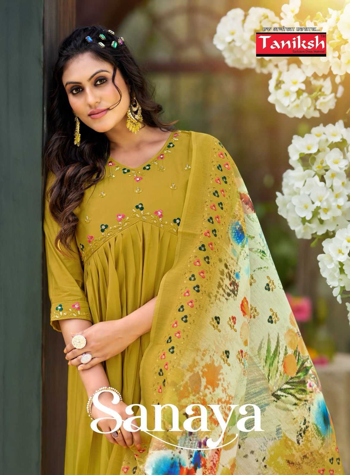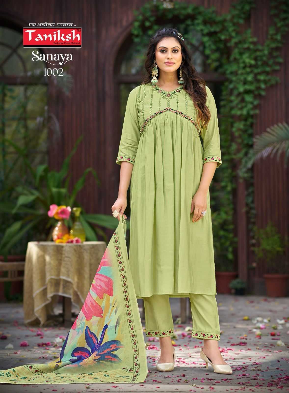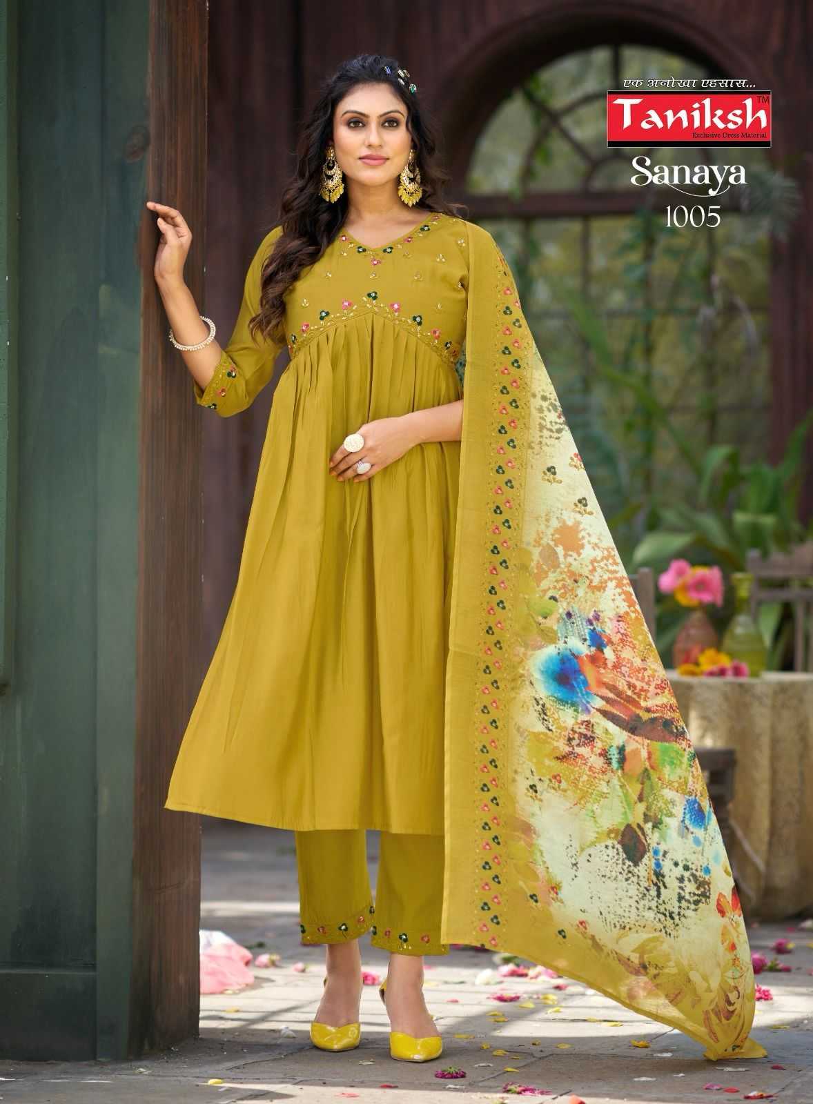 taniksh sanaya vol 1 readymade alia cut kurti pant with digital print dupatta