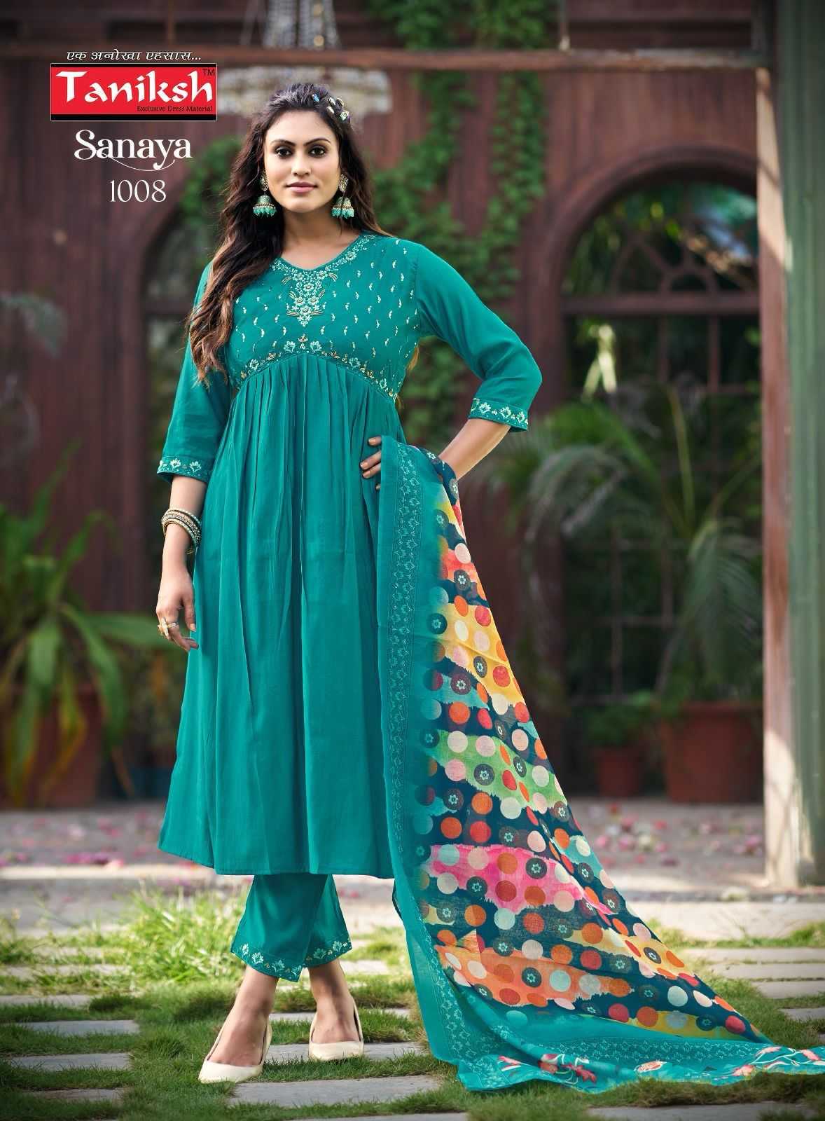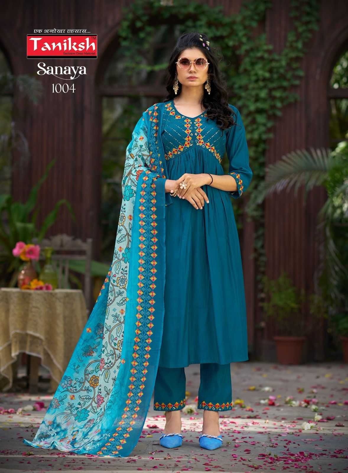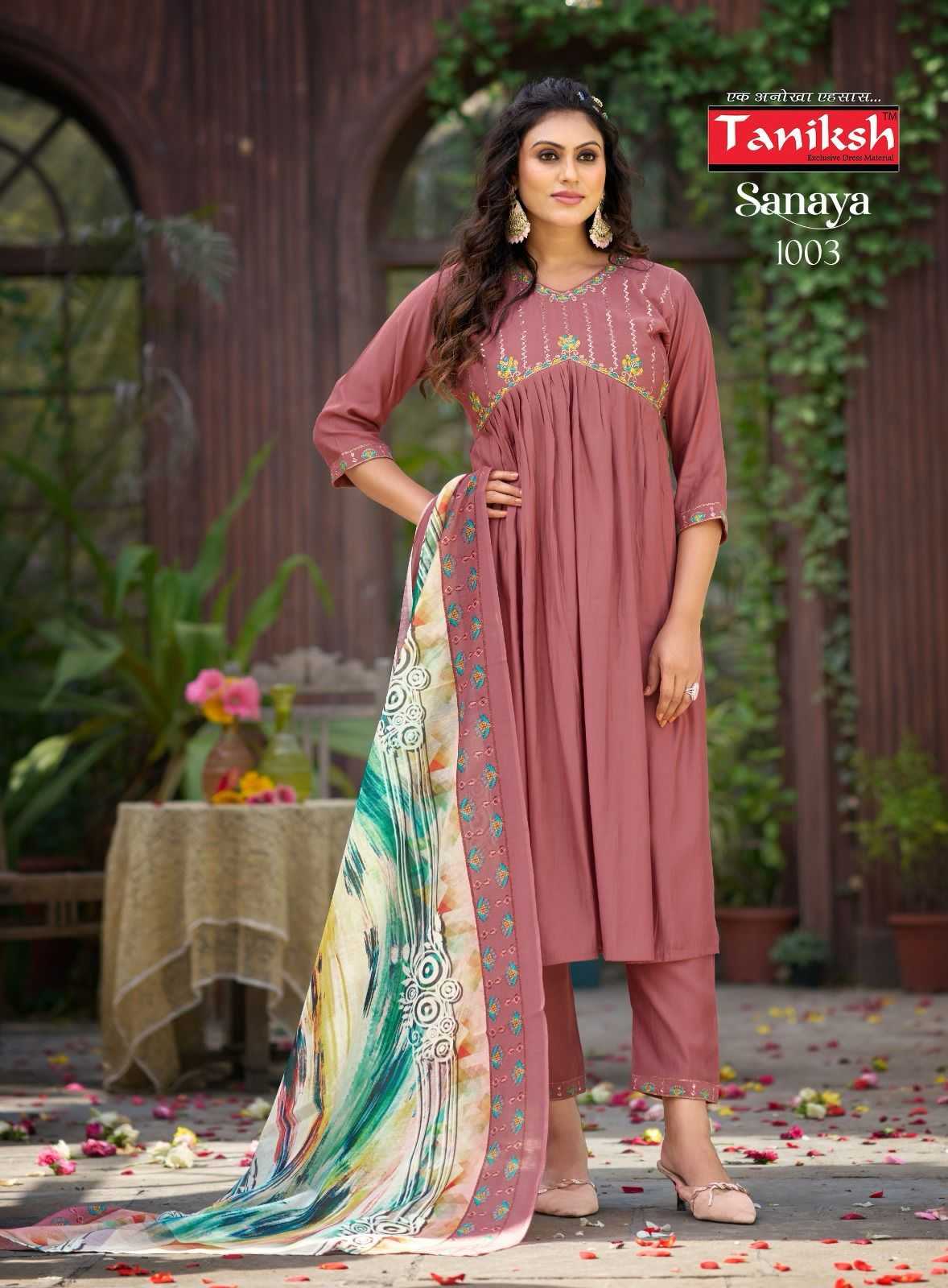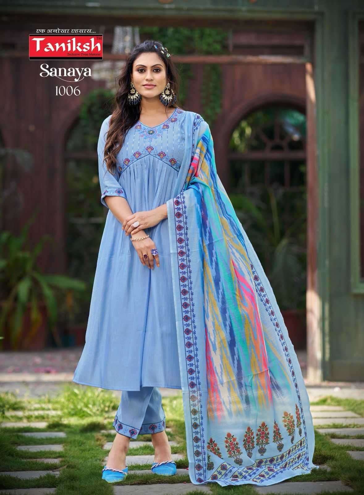 taniksh sanaya vol 1 readymade alia cut kurti pant with digital print dupatta